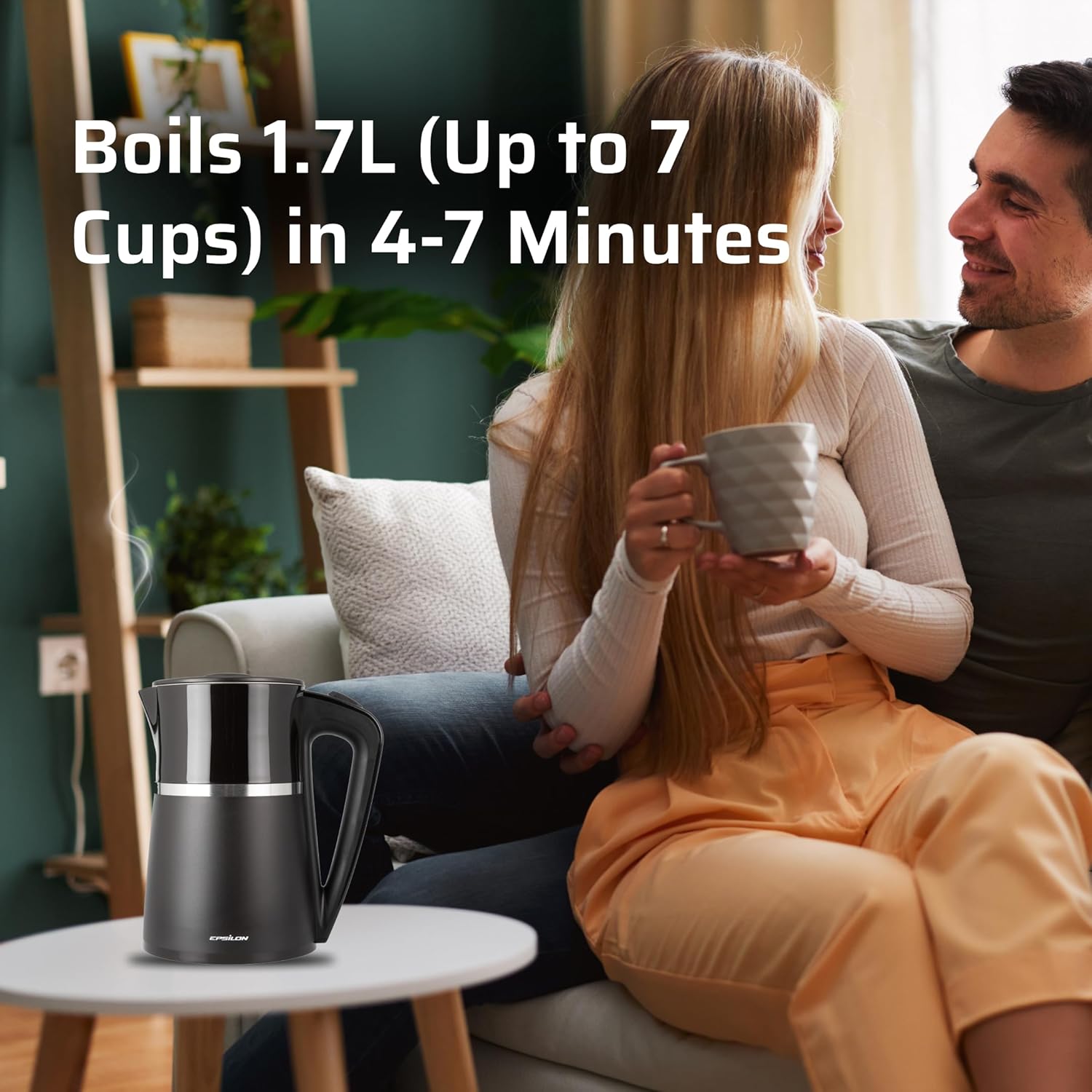 Epsilon Double Wall Electric Kettle 1500W – 1.7L Hot Water Tea Kettle & Hot Water Boiler with Auto Shut-Off, Boil Dry Protection, BPA-Free Stainless Steel Electric Teapot Fast Boil, Cool Touch Design
