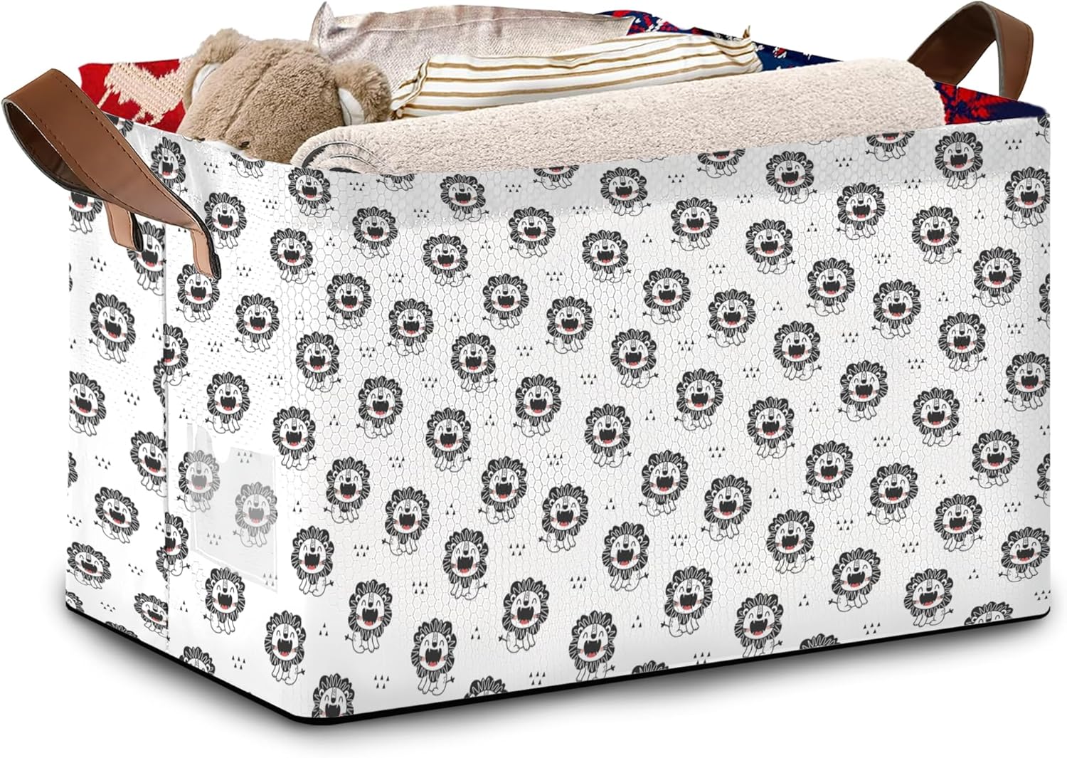 - Conveniently Within Reach: Mogifedc Cute lion Basket Comes With Leather Handles For Easy Transport. Each Handle Is Reinforced And Secured To The Basket With Extra-Strong Stitching,So The Basket Can Withstand Heavy Loads. Each Of These Soft Handles Ensures a Comfortable Grip,Making Housework a Breeze.