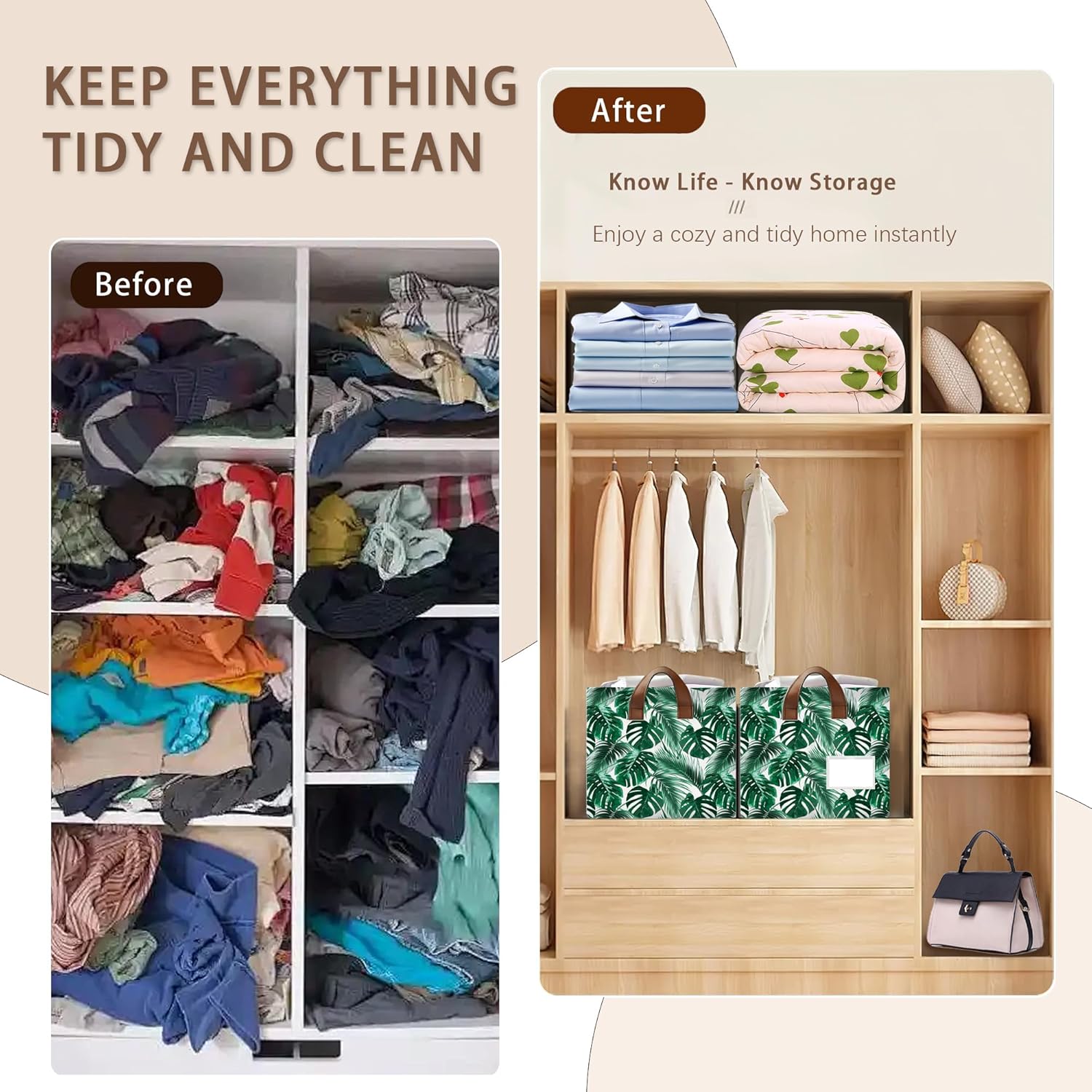 Foldable Collapsible Storage Bin with Palm & Banana Leaf Design-17x11.5x10.5 Inch Organizer Basket for Home, Nursery, Closet-Single Pack, No Lid Space-Saving Storage Box