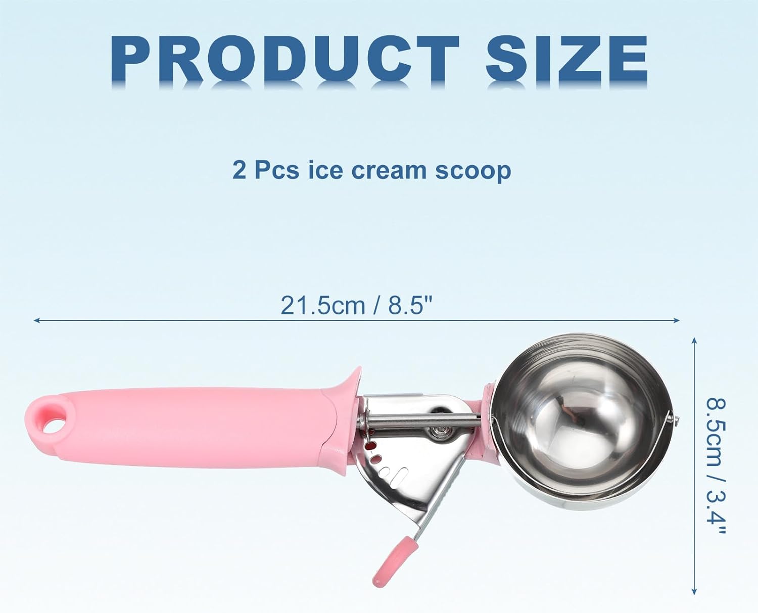 uxcell 2pcs Cookie Scoops, Ice Cream Scoop with Trigger for Baking Cookie Dough Rice Pudding Kitchen Gadget, Pink