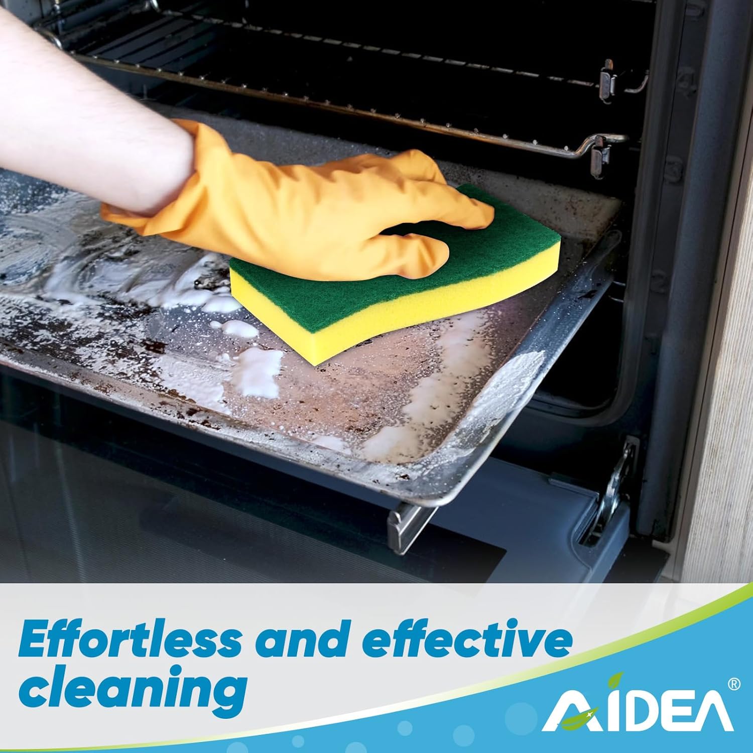 - Built to Last: AIDEA XL cleaning sponges feature a scouring pad on one side and an absorbent sponge on the other; resistant to tearing and wear; suitable for removing tough, burned food stains; endure numerous uses