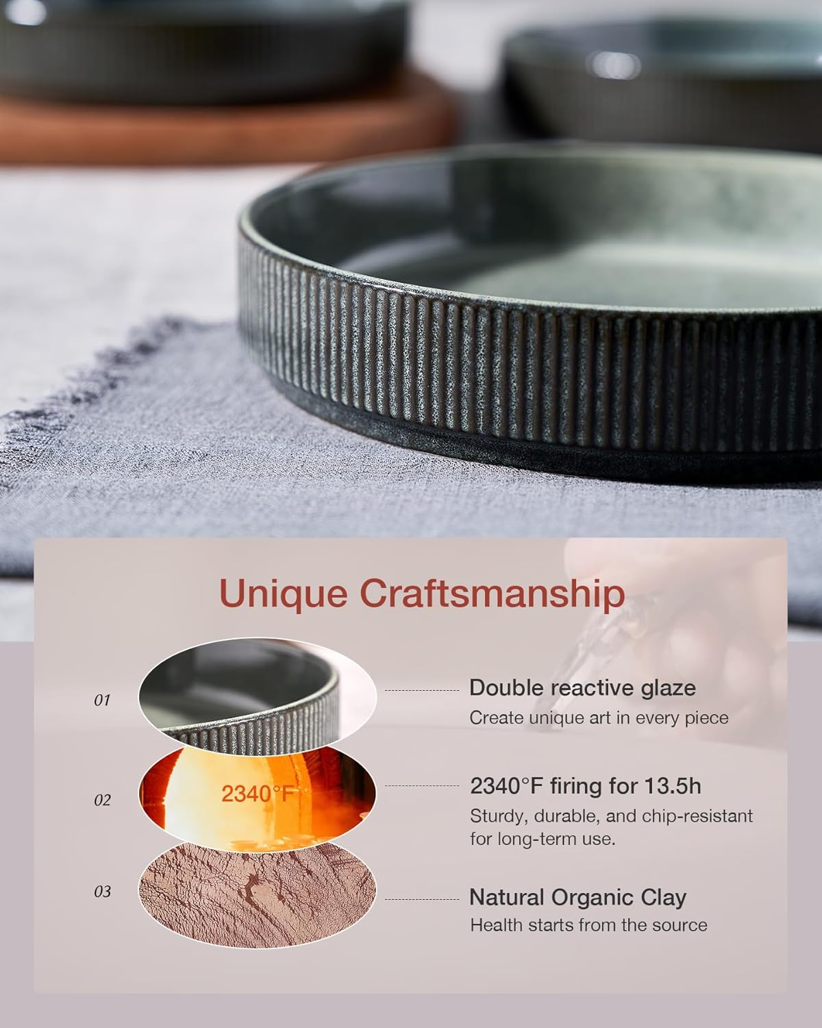 - HANDCRAFTED ELEGANCE: Each of our plate bowls is a testament to the skill and creativity of our artisans, handcrafted and glazed with a DOUBLE REACTIVE GLAZE that brings out a distinct, dreamy color. The hues may differ on your screen, showcasing the one-of-a-kind beauty of our artisanal process