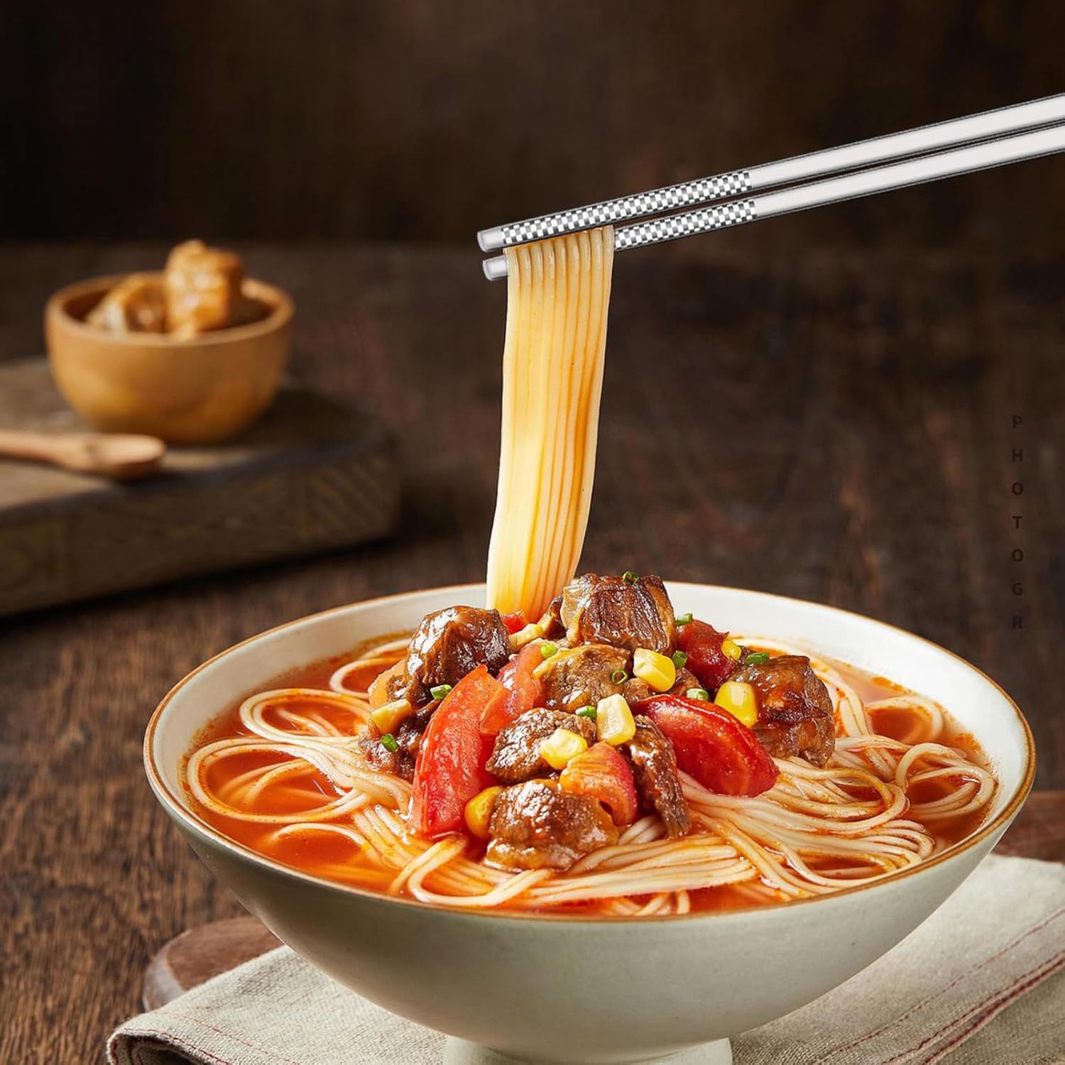 - 【316L Stainless Steel Chopsticks】This 5-piece set of non-slip chopsticks is made of 316L stainless steel, these metal chopsticks offer superior corrosion resistance and longer life than standard 304 stainless steel. The high quality material ensures that there is no metallic residual odor, making it safer for you to enjoy sushi, noodles, and delicious food with these reusable chopsticks