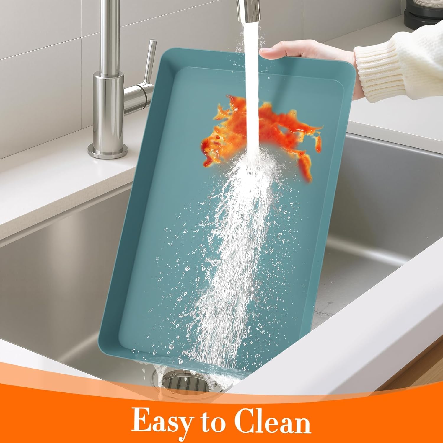 - [Easy to Clean & Stackable]: Cleaning these trays for serving food is a breeze, thanks to its smooth surface. Just a few wipes with a damp cloth and it's good as new, ready for your next use. Plus, it is stackable for easy storage, saving you valuable cabinet space