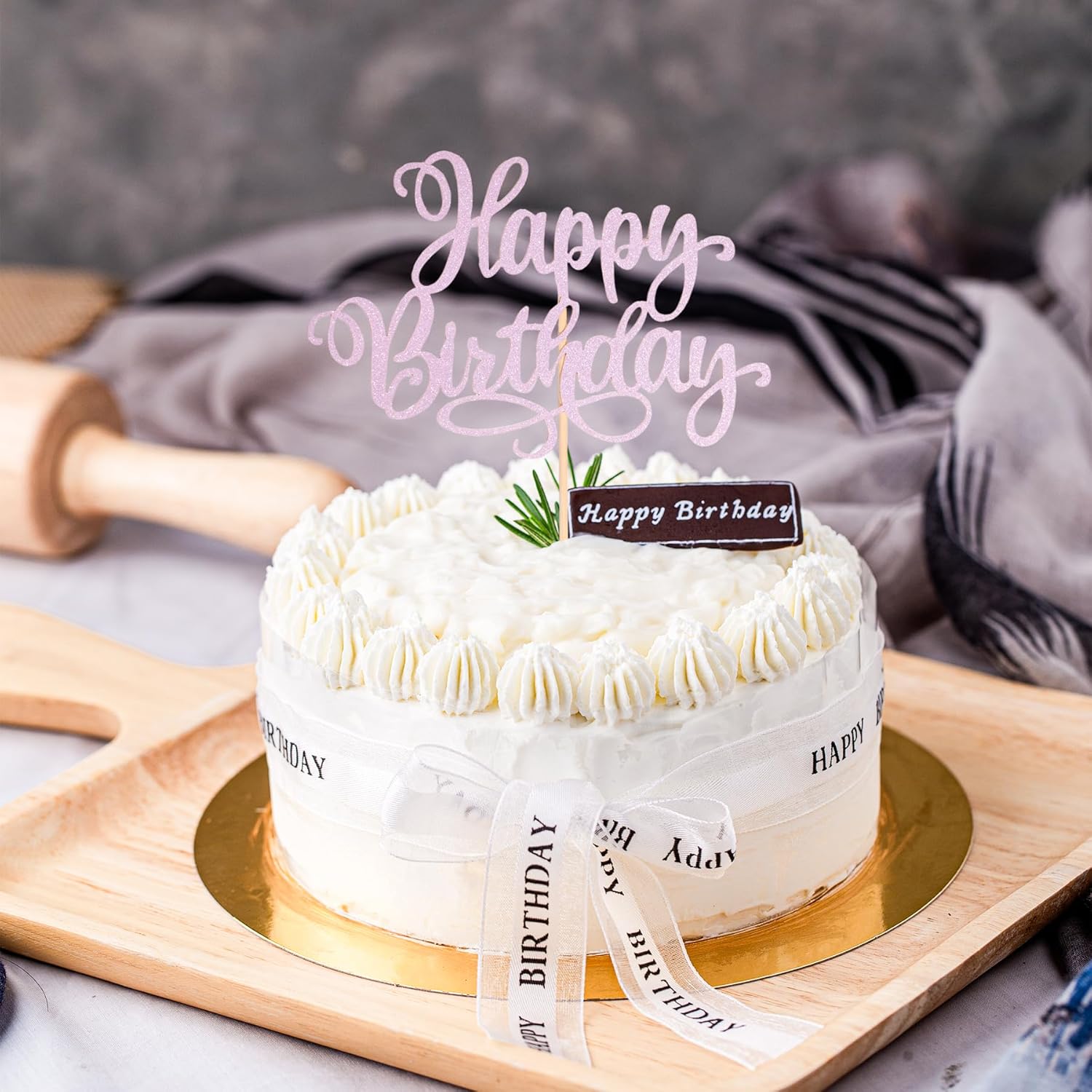 Happy Birthday Cake Toppers 9 Inch Glitter Happy Birthday Cake Toppers Pick for Birthday Anniversary Theme Party Cake Decorations Supplies - Litht Pink