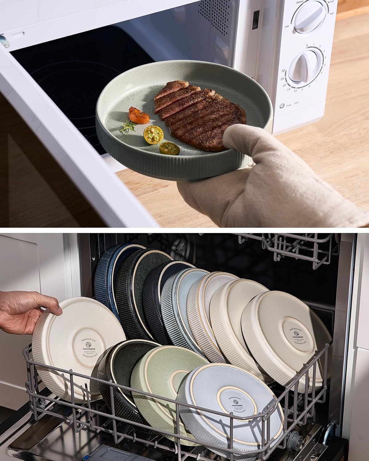 - HANDCRAFTED ELEGANCE: Each of our plate bowls is a testament to the skill and creativity of our artisans, handcrafted and glazed with a DOUBLE REACTIVE GLAZE that brings out a distinct, dreamy color. The hues may differ on your screen, showcasing the one-of-a-kind beauty of our artisanal process