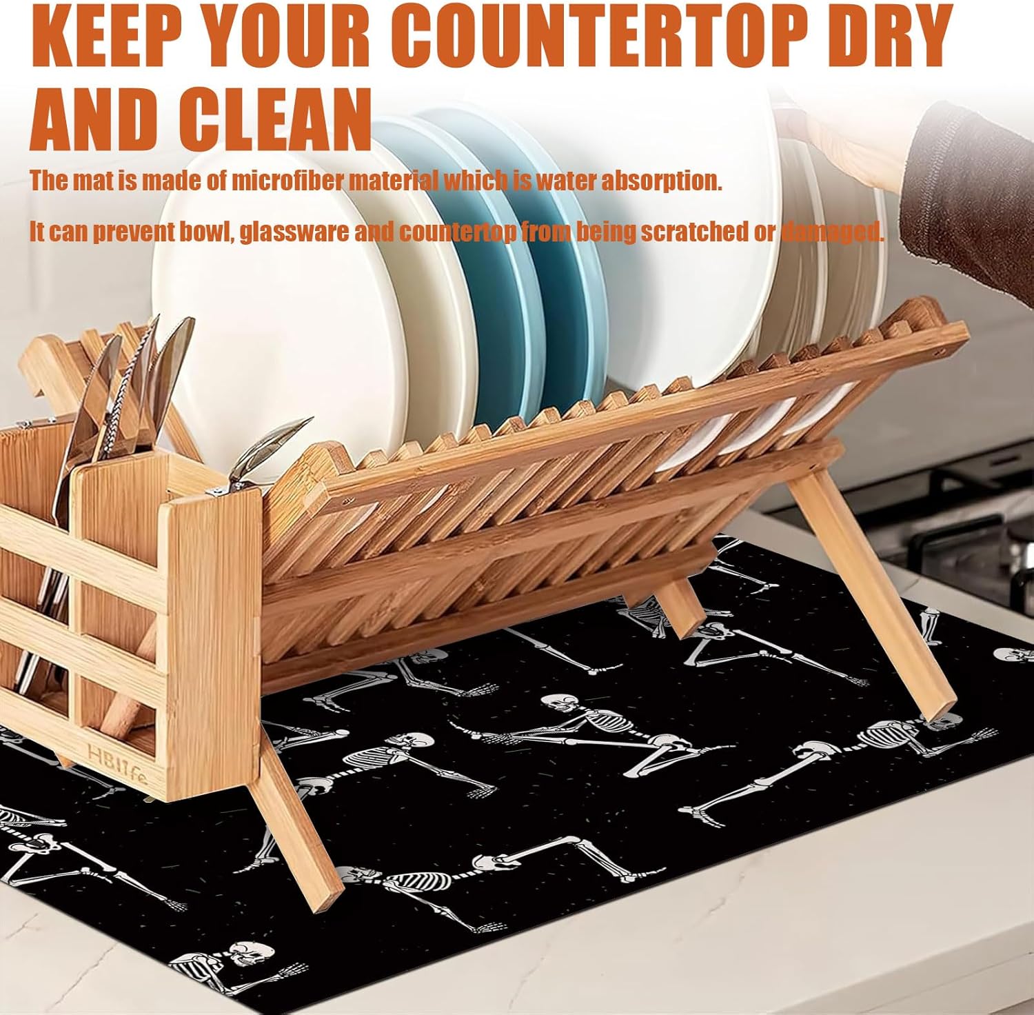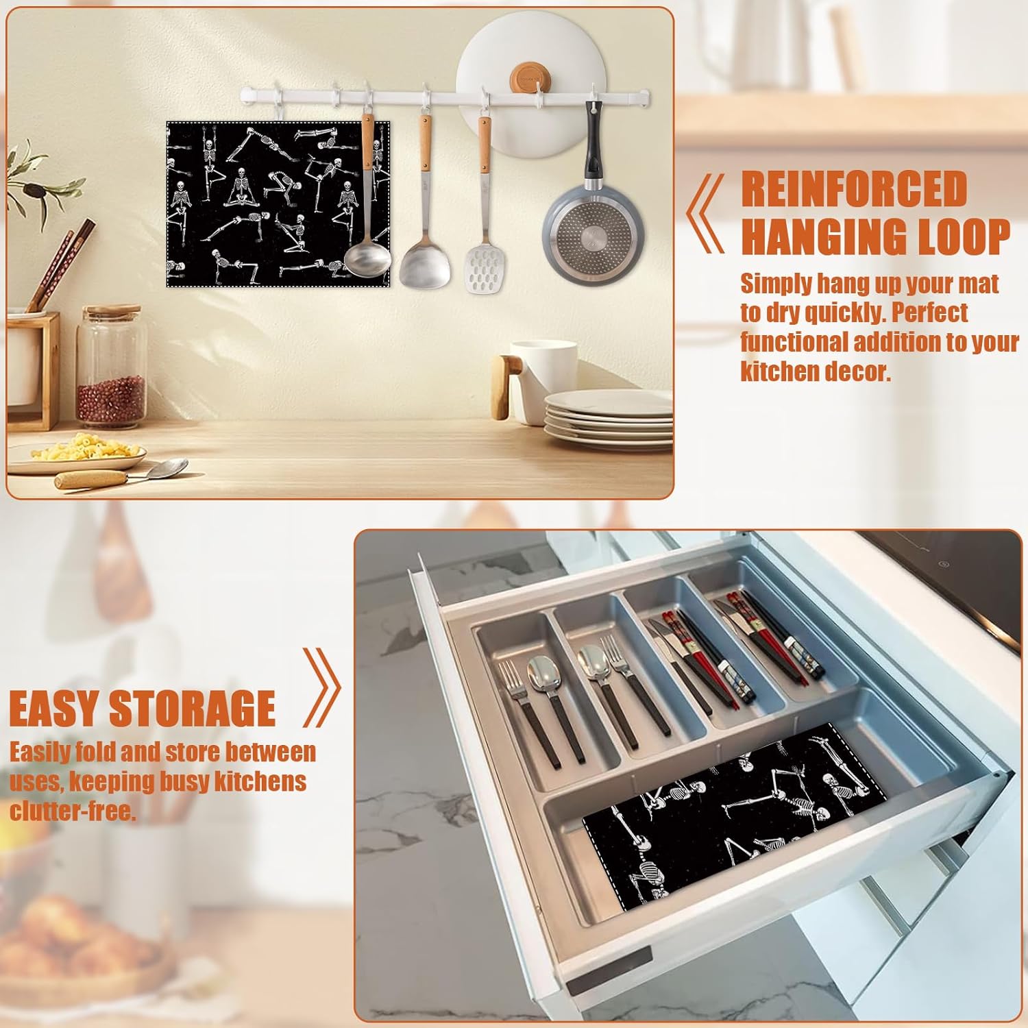 Funny Skull Yoga Dish Drying Mat for Kitchen Counter Microfiber Absorbent Dish Kitchen Drying Mat Draining Reusable Washable for Dishes/Utensils/Counterto