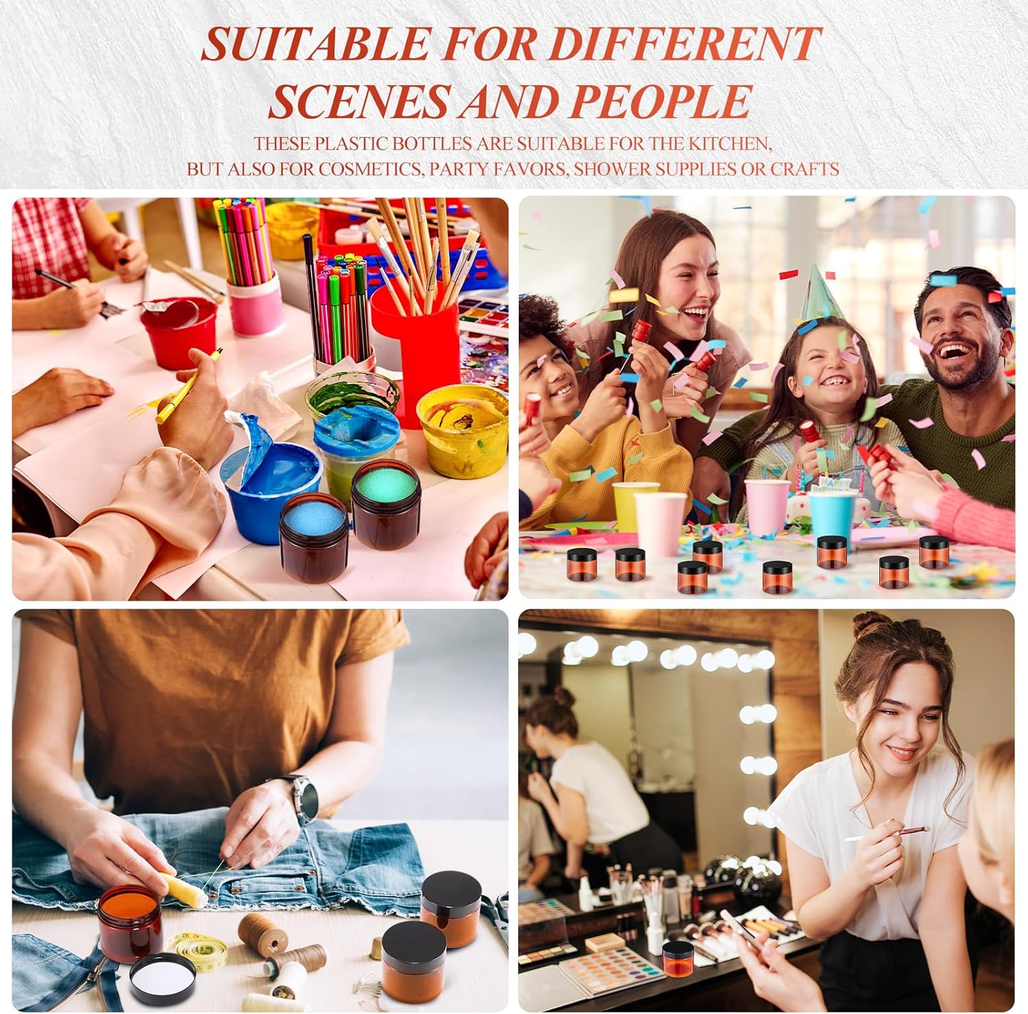 SATINIOR 6 Pack 4 oz Plastic Jars Containers with Lids Wide-mouth Refillable Leakproof Reusable Round Empty Jars for Travel Cosmetic Dry Food Spice Cookie Candy Home Kitchen Organizing(Amber)