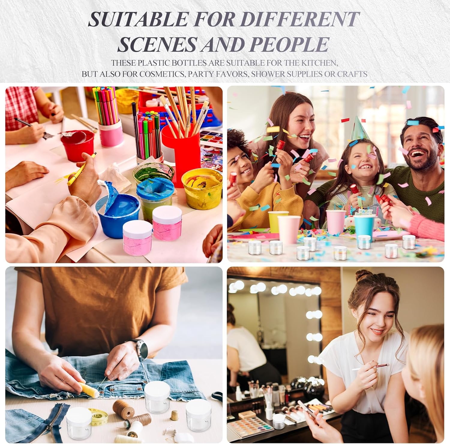 - Quality material: these round plastic pot jars adopt quality PET plastic, not easy to be broken, with good impact resistance, keep everything neat and organized
