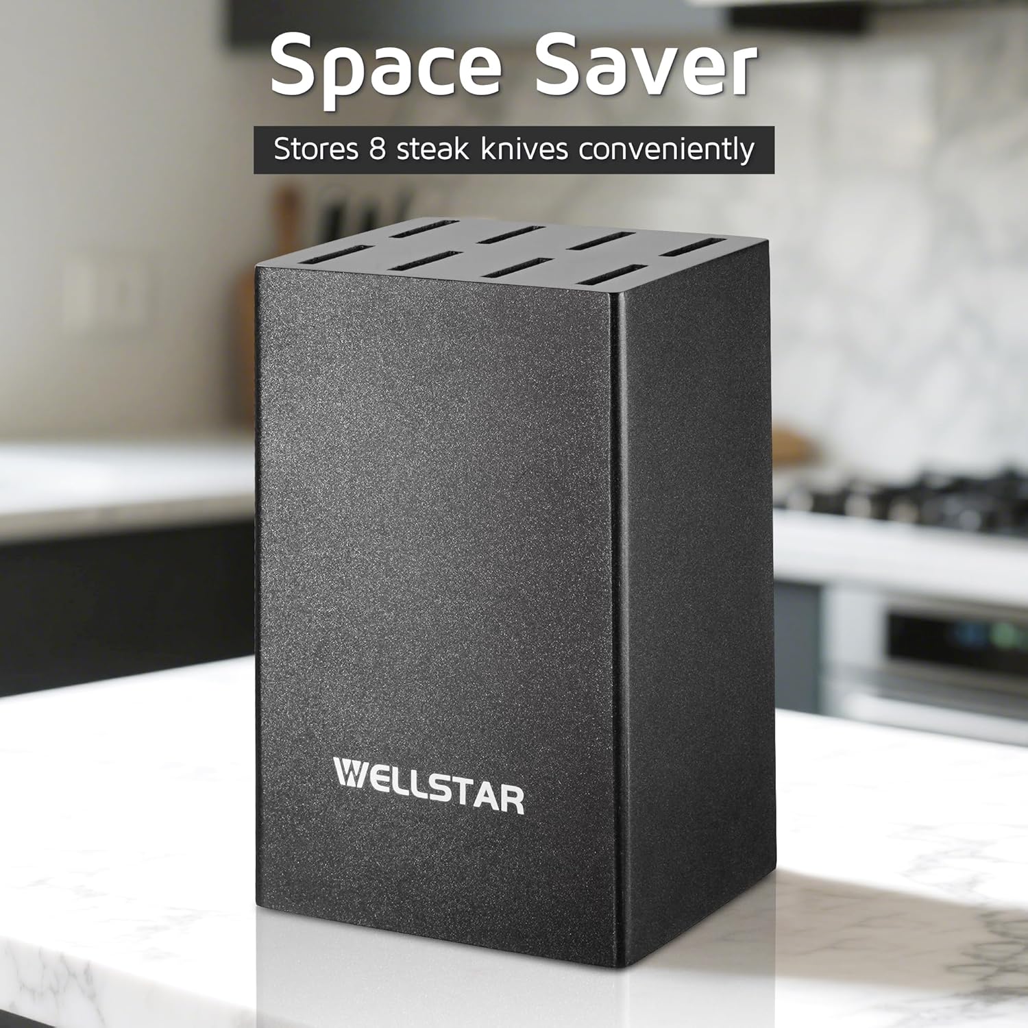 WELLSTAR 5-Inch Steak Knife Holder Only– Wooden Knife Block with 8 Slots (No Knives Included) – Compact, Space-Saving Design for 5" Steak Knives – Sturdy Wood Storage Organizer