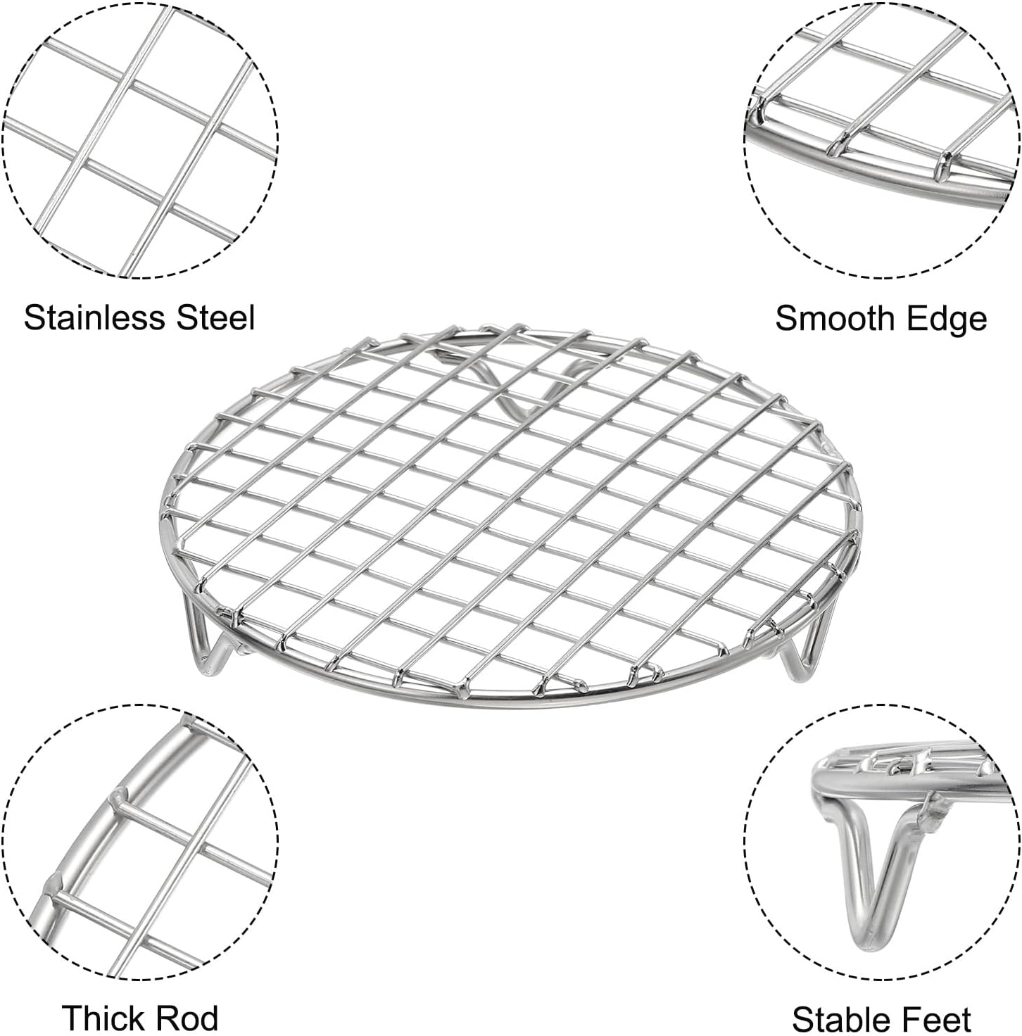 uxcell Round Cooking Rack with Legs, Dia 5.9 Inch 304 Stainless Steel Barbecue Grill for Cooking Baking Barbecue Air Fryer Racks, Silver