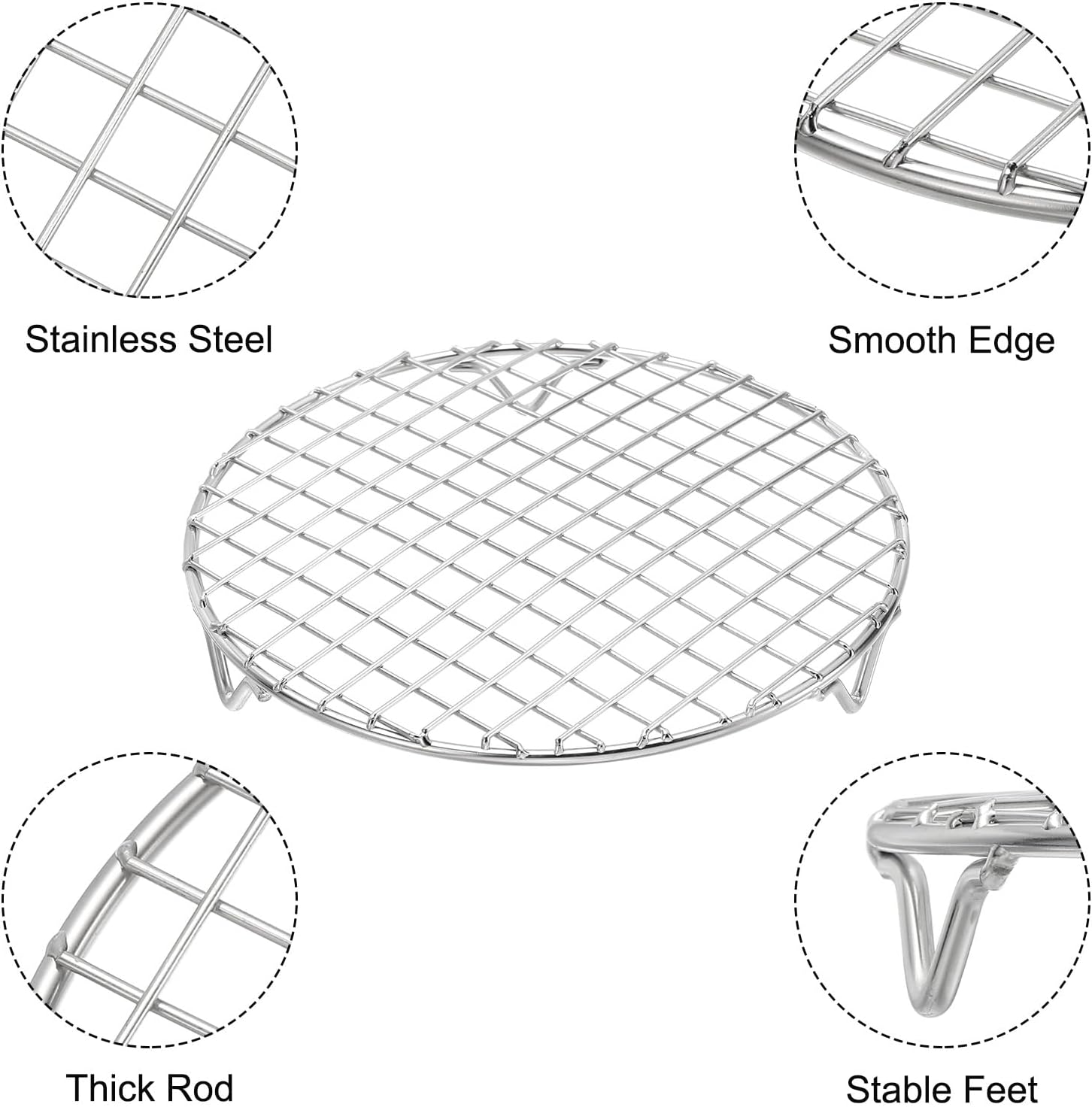 uxcell Round Cooking Rack with Legs, Dia 7.1 Inch 304 Stainless Steel Barbecue Grill for Cooking Baking Barbecue Air Fryer Racks, Silver