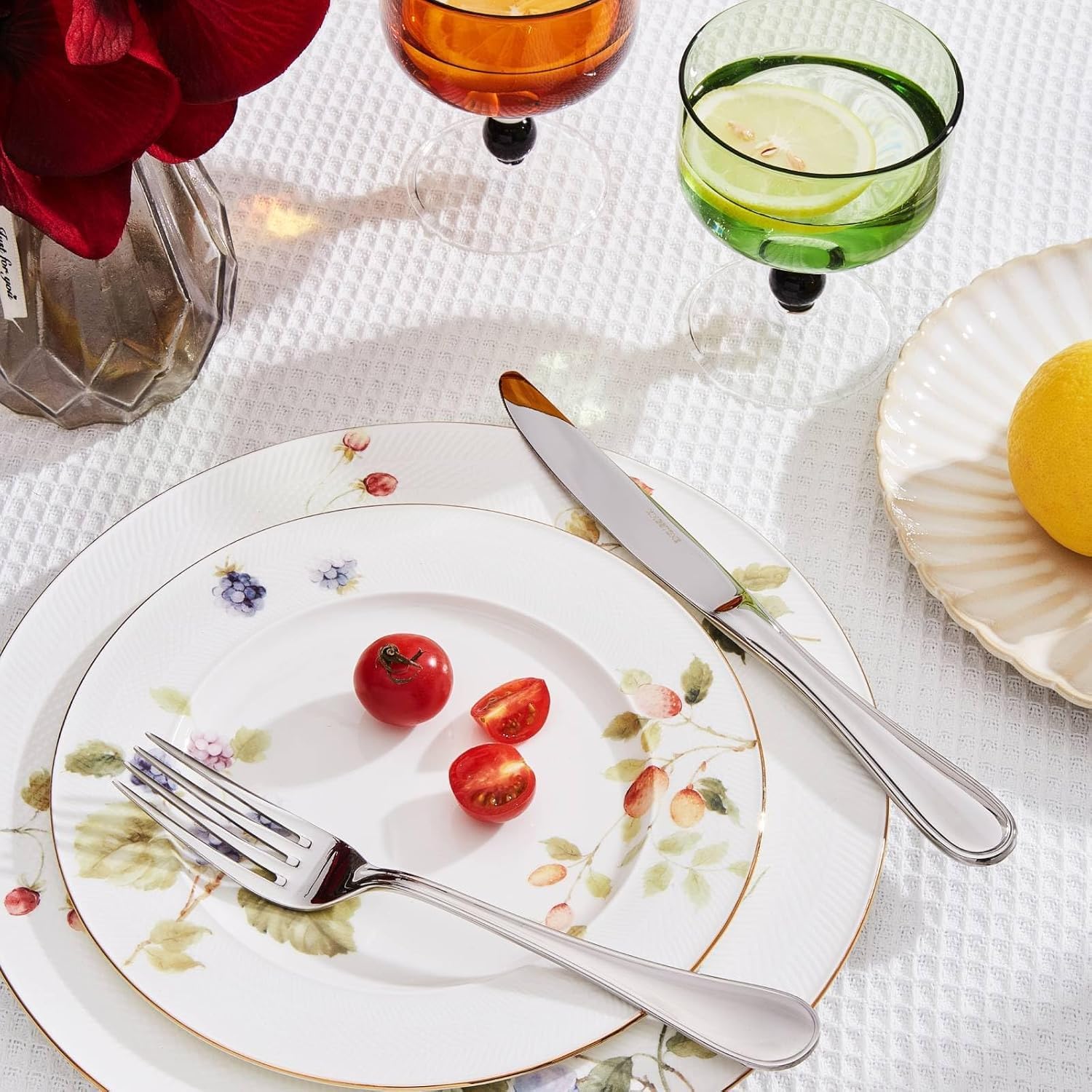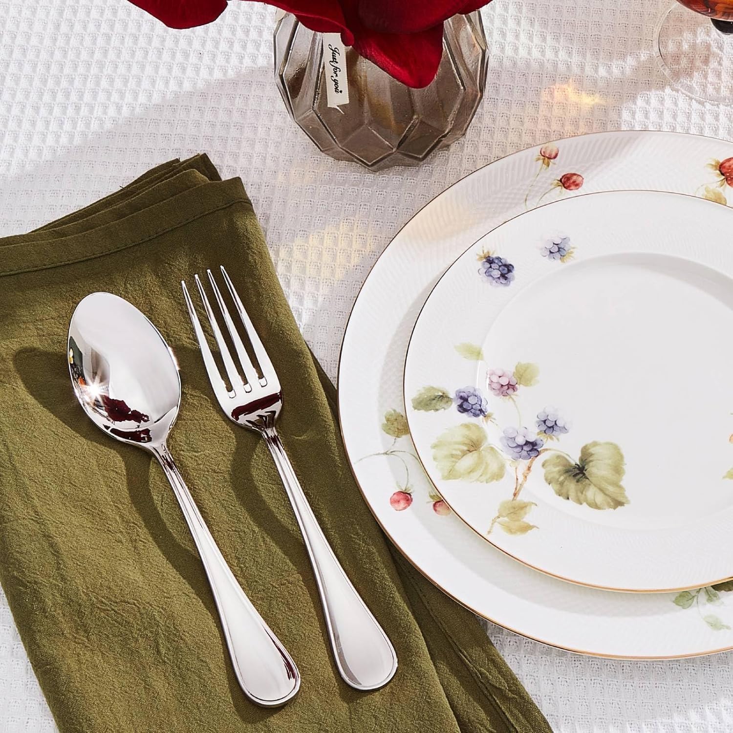 - Excellent Design & Polishing: Design of the silverware set is classic and timeless, with unique shapes and smooth lines,which can be perfectly matched with your existing flatware sets. Multiple times of hand polishing gives it shiny luster after long time use, making it a good choice for gifts