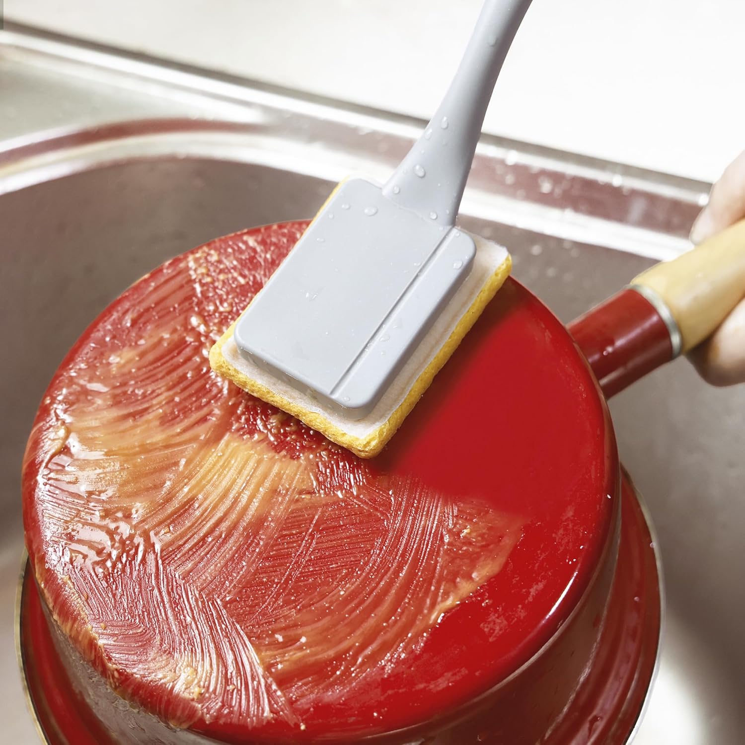Dish Brush with Handle,Non-Scratch Household Cleaning Brushes Dishwand with 5 Sponge Refills for Pans, Pots, Sink & Tubs,Grey