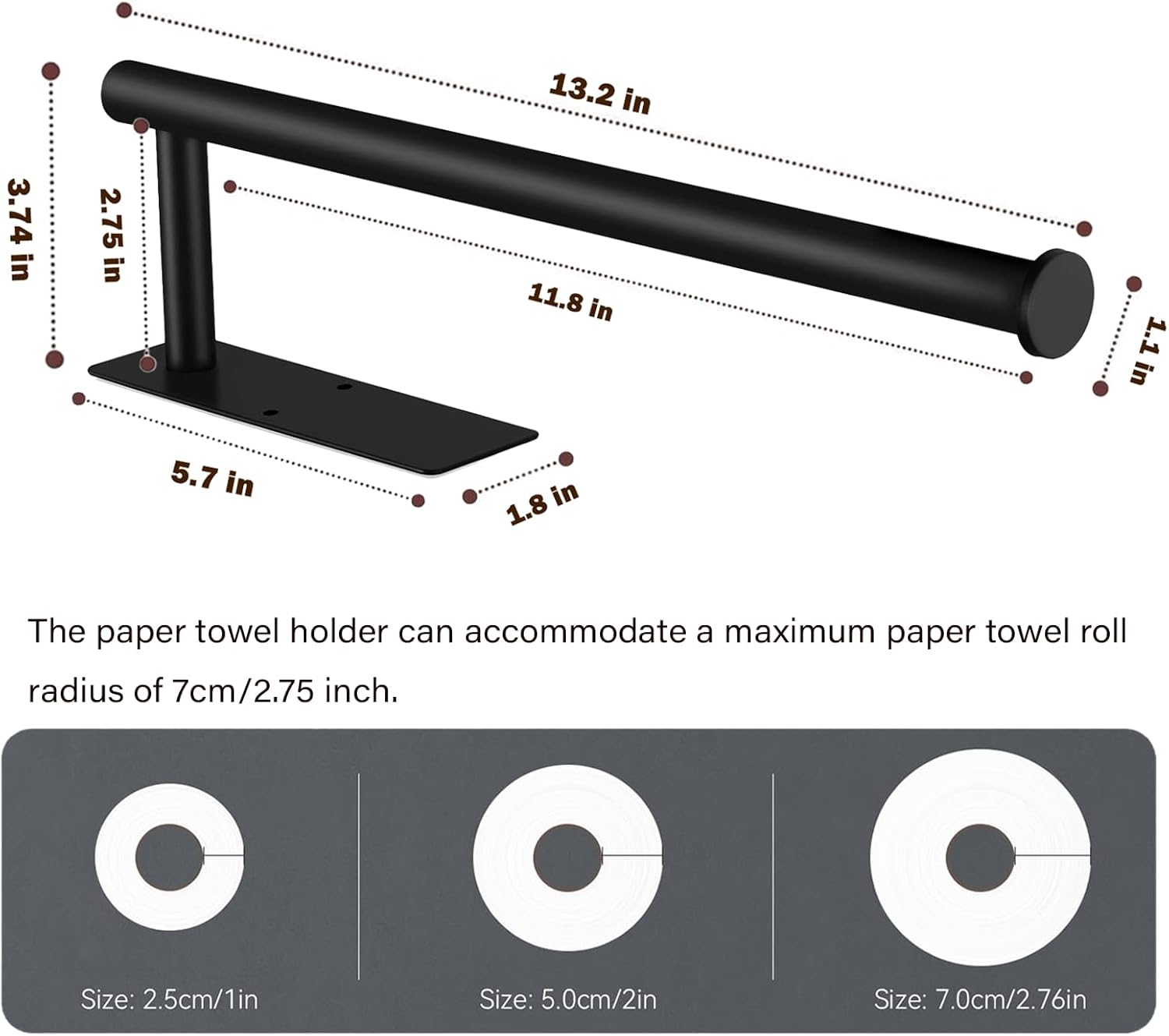 - SIZE : Paper towel holder is 13.2 inches long and 3.74 inches wide.Fits paper towels up to 11.8 inches in length and 2.75 inches in width.