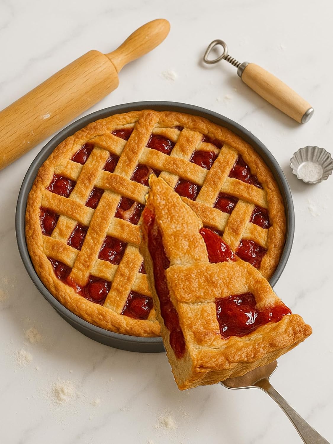 10×2.6 Inch Deep Pie Pan with Cake Server for Pie Tart Quiche Baking. Round Cake Pan with Non-Stick Coating, Rugged Carbon Steel. Gift for Women Wife Christmas Thanksgiving Party Festival