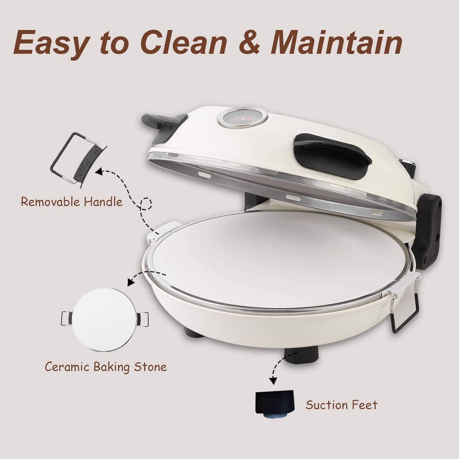 - DUAL-ZONE CERAMIC STONE - The 12" natural ceramic stone ensures even heat distribution for consistent cooking results. Removable stone base allows for quick cleanup while preserving countertop space.