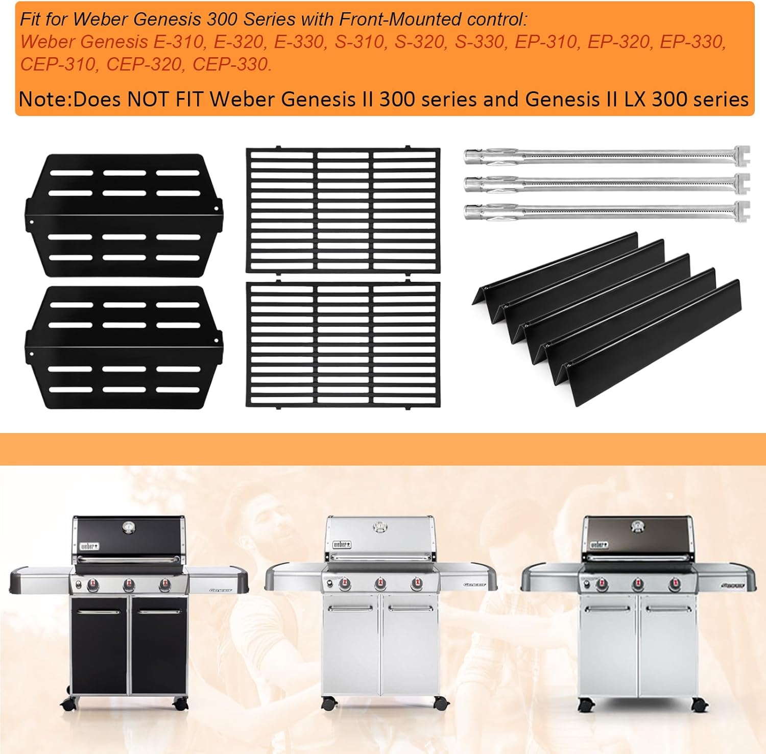 - Compatible Models:Grill replacement parts kit perfectly fits for Weber Genesis 300 Series with Front-Mounted control: Weber Genesis E-310, E-320, E-330, S-310, S-320, S-330, EP-310, EP-320, EP-330, CEP-310, CEP-320, CEP-330.---Note:Does NOT FIT Weber Genesis II 300 series and Genesis II LX 300 series