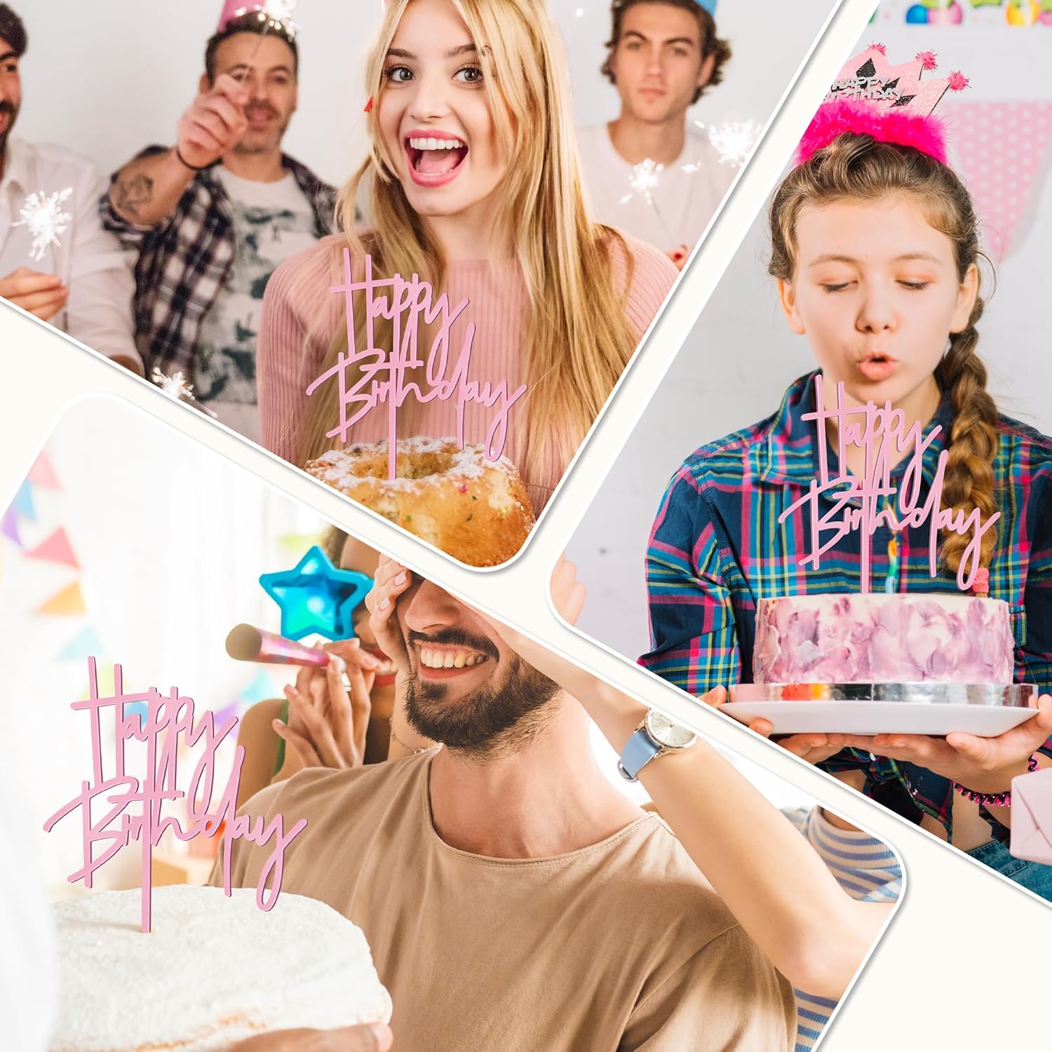 1PCS Pink Birthday Cake Topper, 5.3 x 7.2Inches Happy Birthday Cake Topper, Acrylic Happy Birthday Cake Sign for Children or Adults, Party Cake Desserts Decor and Photo Booth Props