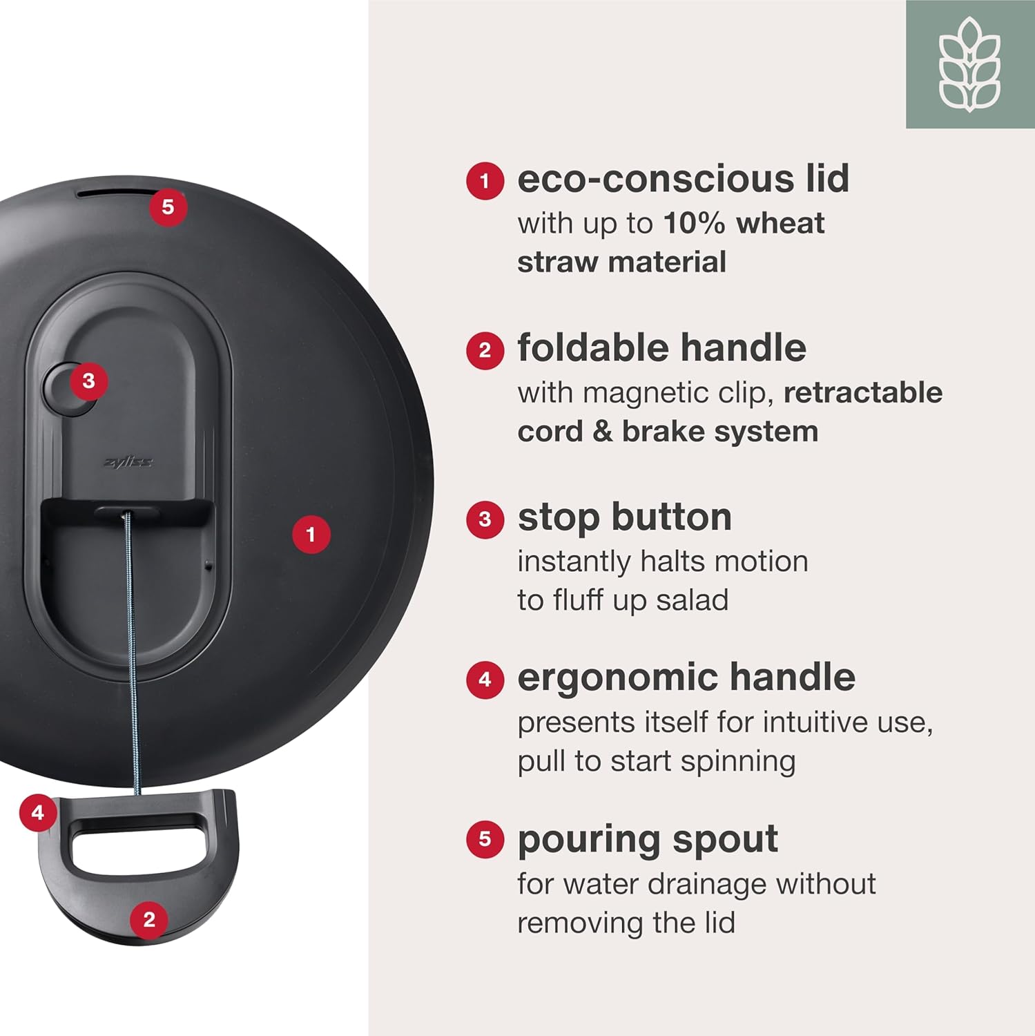 - Sustainable & Compact Salad Dryer: The salad spinner lid is made from sustainable wheat straw material, which reduces plastic use; this fruit cleaning bowl is dishwasher friendly