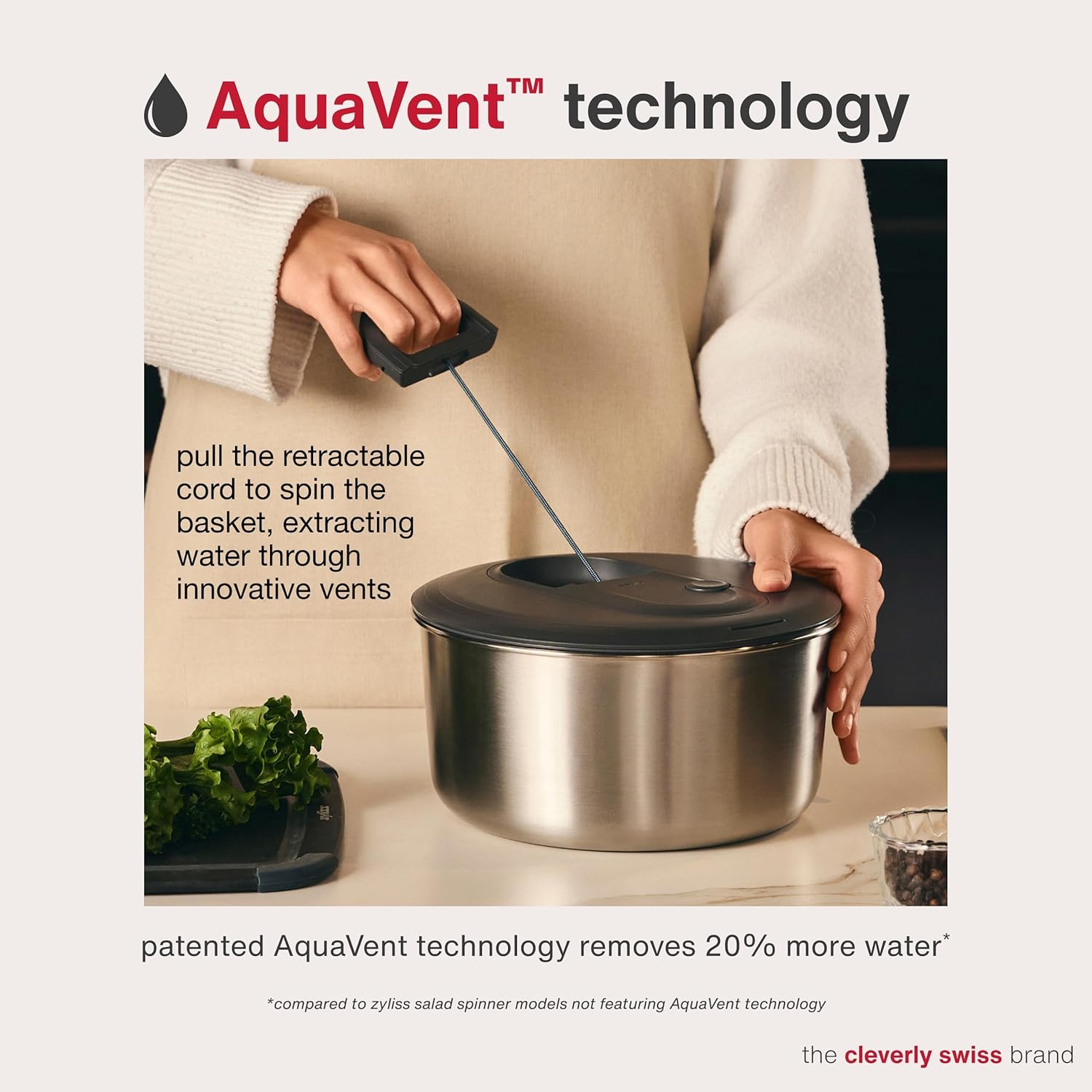 - Reliable & Stackable Salad Prep Bowl: This large vegetable spinner dries 4-6 portions of salad or vegetables within seconds; our patented AquaVent technology removes 20% mor water with its fast, efficient water extrusion