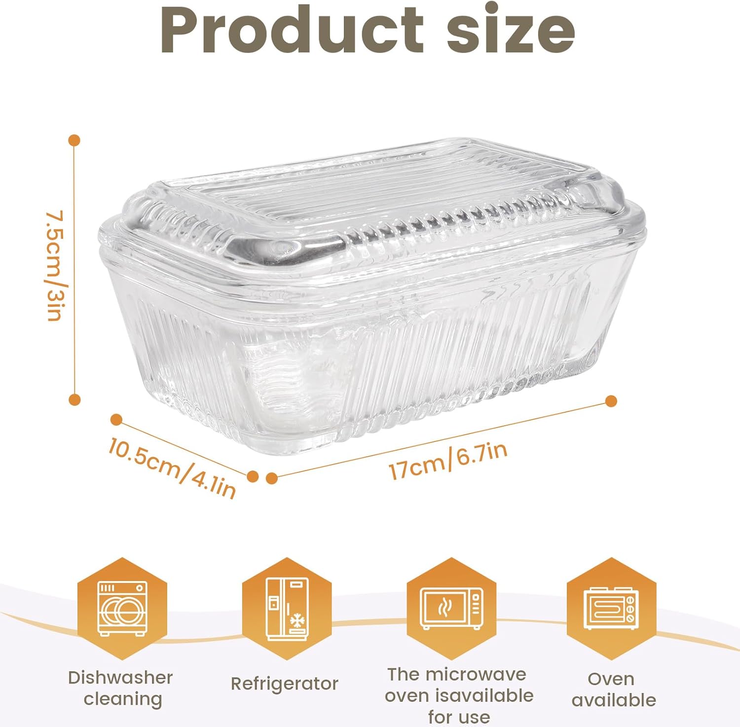 - 【Safe Packaging and Effortless Cleaning】: Butter dish we provid are carefully packaged with an innovative anti-collision design, ensuring that your butter dish arrives in pristine condition. Additionally, in terms of cleaning,dishwasher-safe for your convenience, this keeper makes cleanup a breeze, allowing you to effortlessly remove grease and stains from the glass surface.