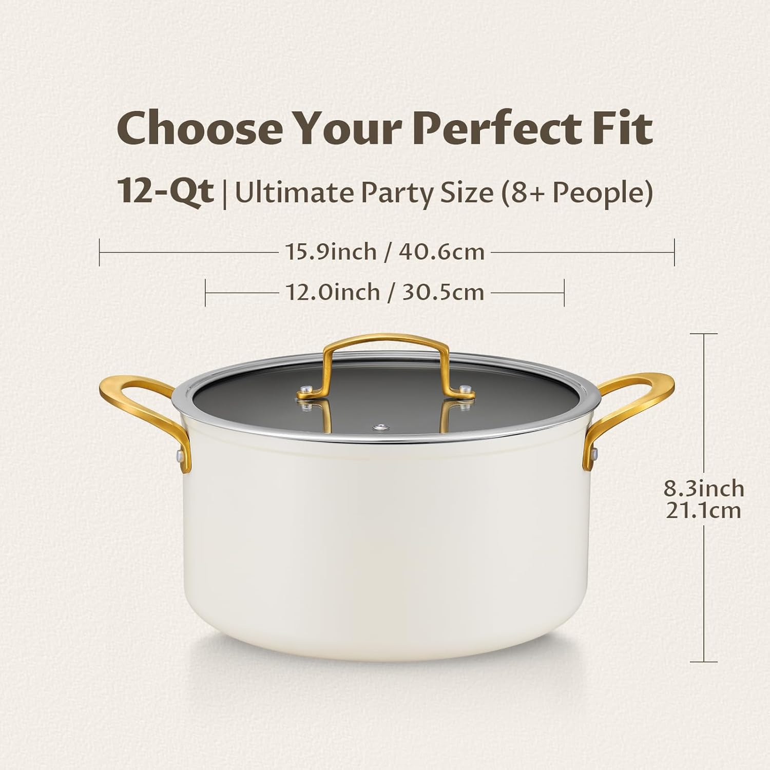 BEZIA Non Stick Stock Pot With Lid, 12 Quart Large Stockpot for Catering for Groups and Events, Induction Cooking Pot for All Stoves, Sturdy & Double Handle, Ideal for Soups & Stews, Cream