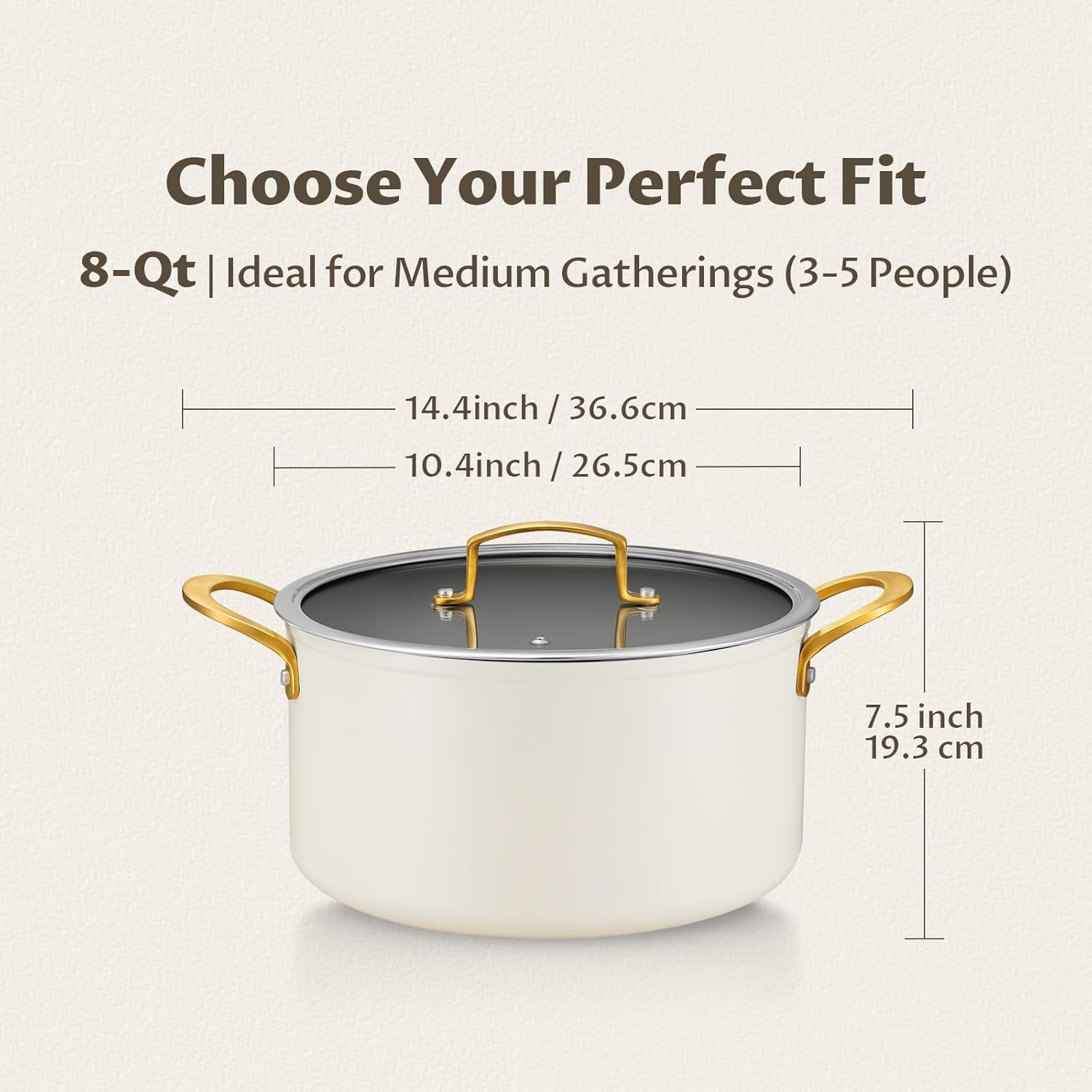BEZIA 8 Quart Ceramic Stock Pot, Non Toxic Soup Pots with Lid, Non Stick Pot with Stainless Steel Handle, Compatible With Most Cooktops, Even Heat Distribution, Perfect for Soups & Stews, Cream