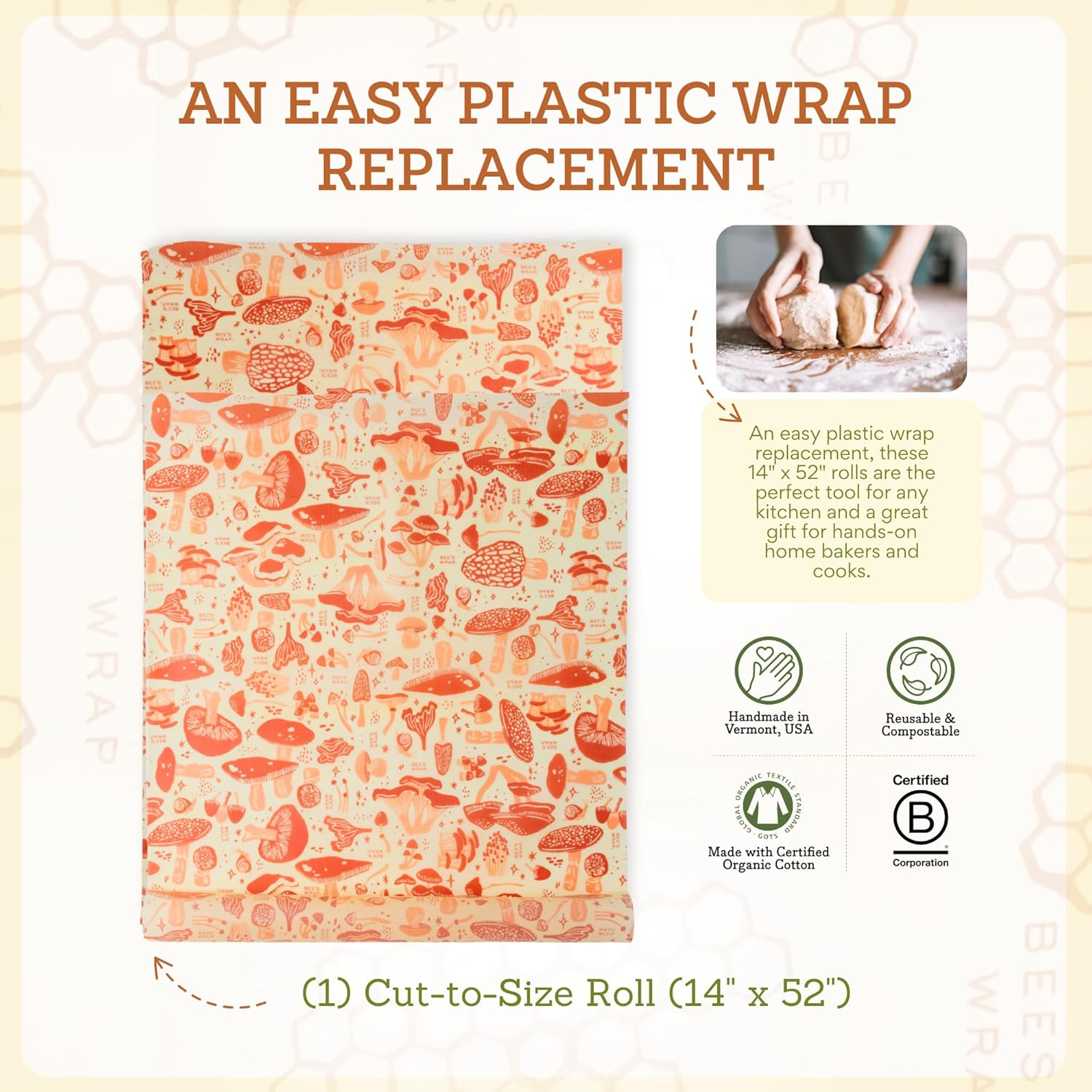 Bee's Wrap Beeswax Wraps for Food - Mushroom Magic Cut to Size 14x52" Wax Paper Roll - Made in USA Reusable Waxed Paper & Bowl Covers - Organic Eco-Friendly Alternative to Aluminum Foil & Plastic Wrap