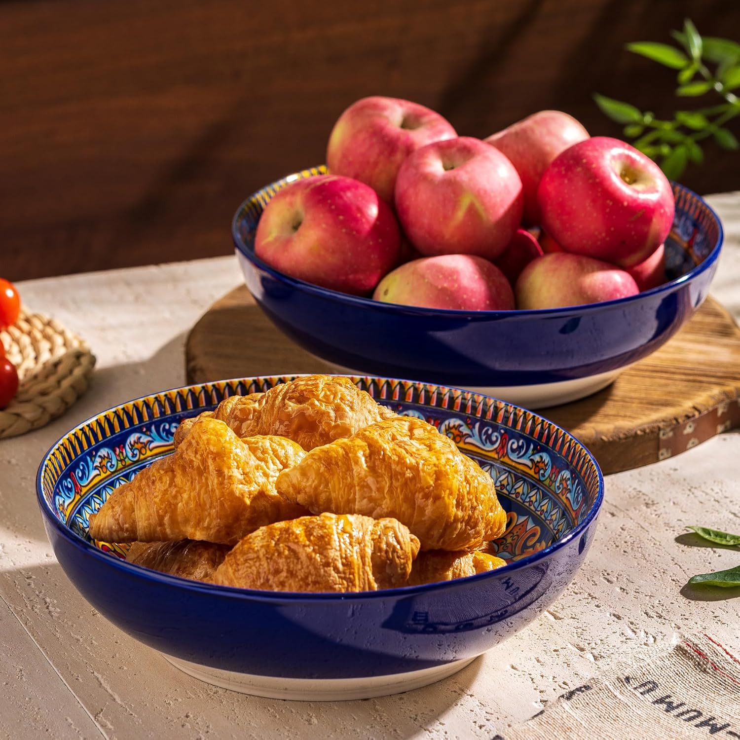 Large Serving Bowls Set of 2, Bohemian Style 10" Large Ceramic Bowls for Entertaining and Party, Bowls for Pasta Soup Fruit Ramen Cereal, Dishwasher Oven Safe