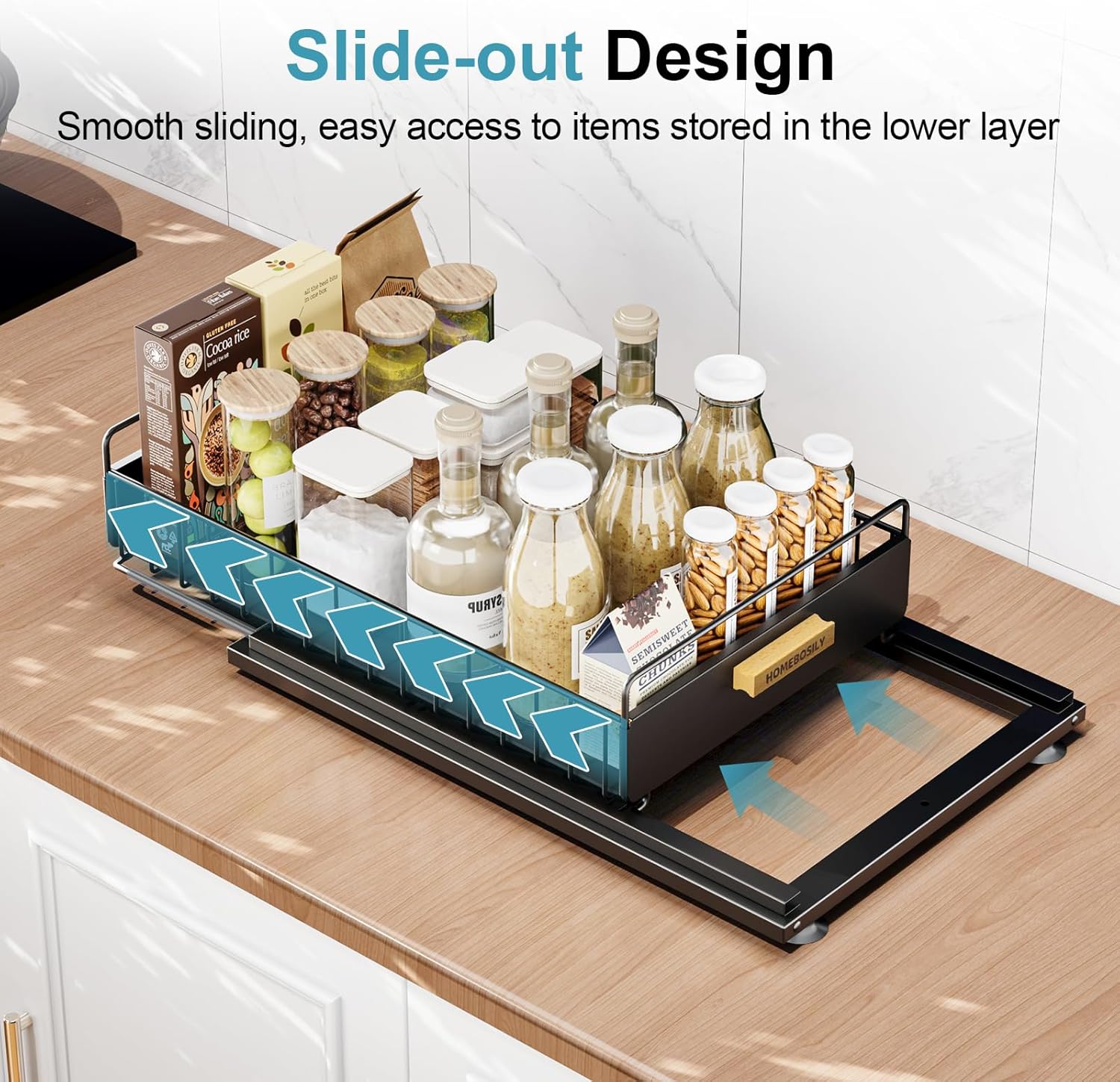 - Sliding Drawer Design: The fully extended sliding drawer of kitchen storage organization can easily slide and take out deep cabinet items. There is a plastic sleeve at bathroom storage, which can be pulled out quietly, freely storage more convenient