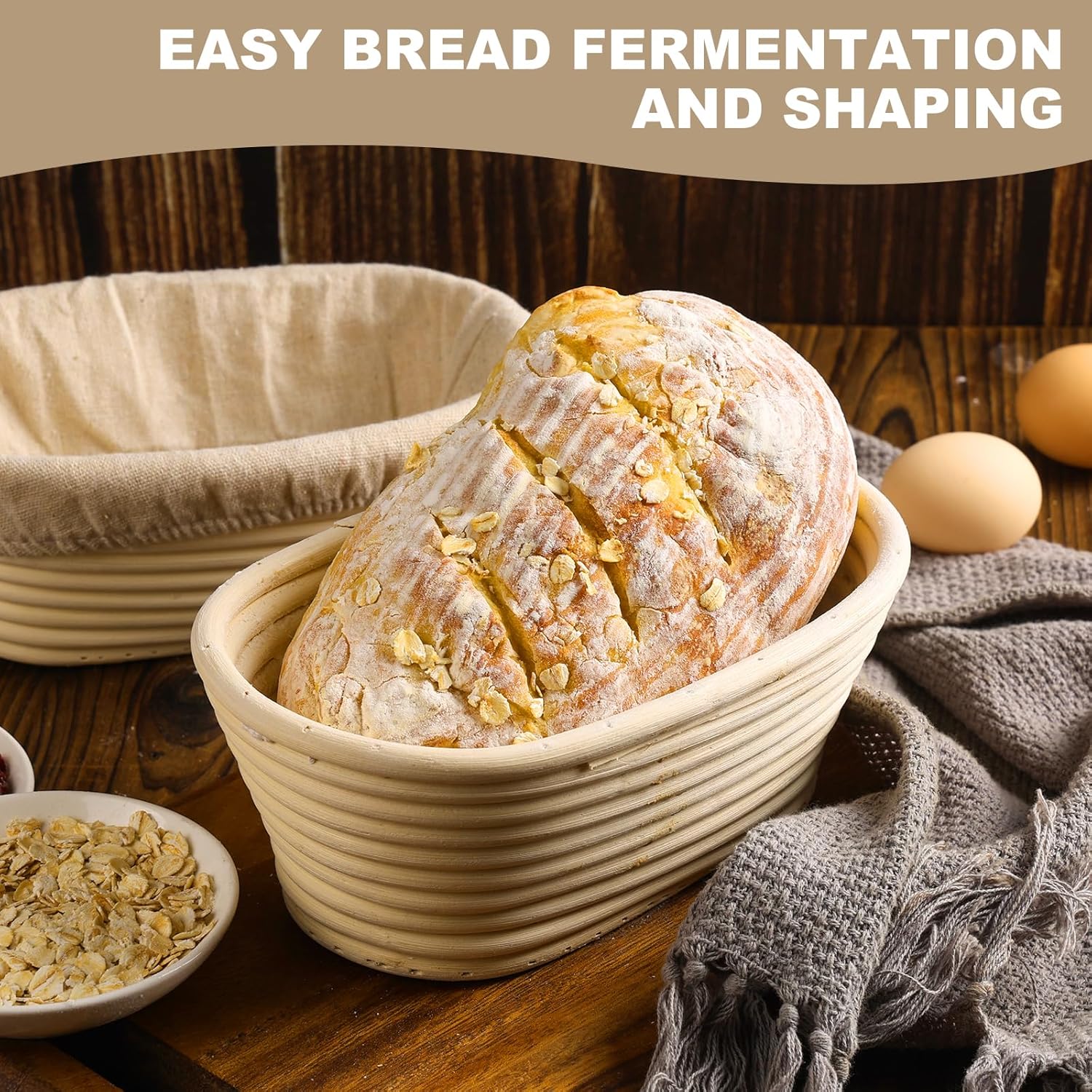 Banneton Bread Proofing Basket - Banneton Basket Set of 4 Pack 6.7 inch Oval Sourdough Proofing Basket with Liner - Handmade Rattan Proofing Rising Bowl for Artisan Bread Making Baking Supplies