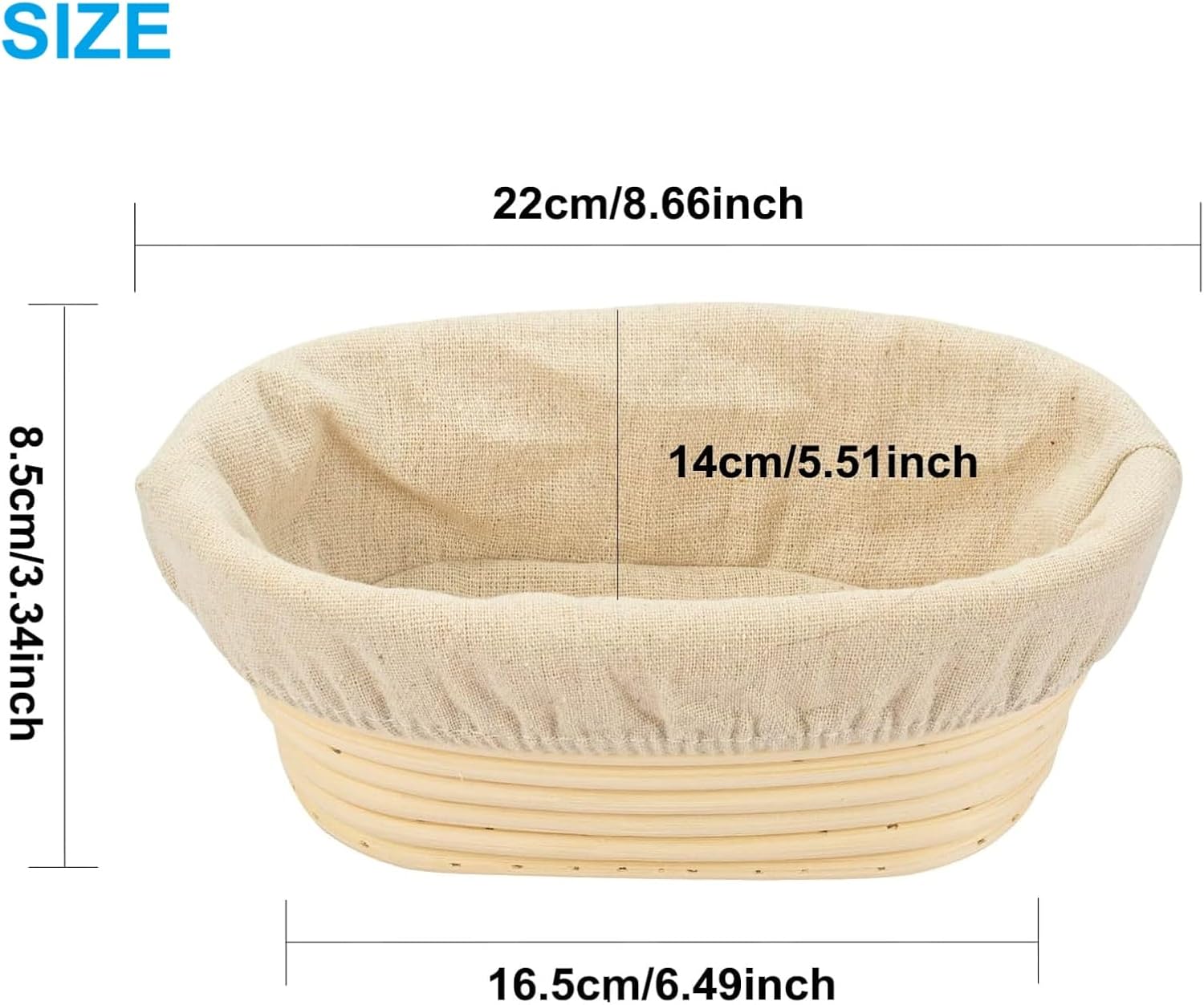 - Perfect Size for Baking Bread: 4 PCS 8 inch (L) x 5.6 inch(W) x 3.5 inch (H) size oval bread proofing basket, which eachpieces can hold up to 0.8 pounds of dough, works well with any recipe involving Flour Water Salt and Yeast etc. This bread proofing bowl is capable of proving overnight in the fridge with a tightly cover bag.