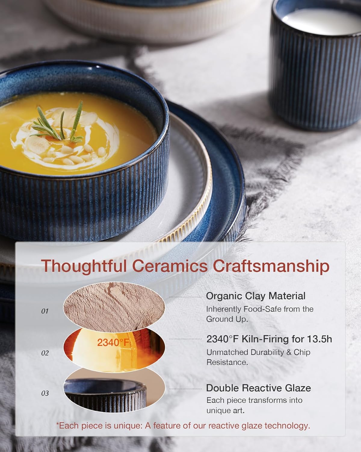 - [Premium Ceramic Durability]: Fired at 2340Β°F for 13.5 hours, our dishes boast impressive weight and thickness. They can resist chipping, scratching and daily wear, ensuring reliable kitchen use. Enjoy worry-free daily use, even with silverware