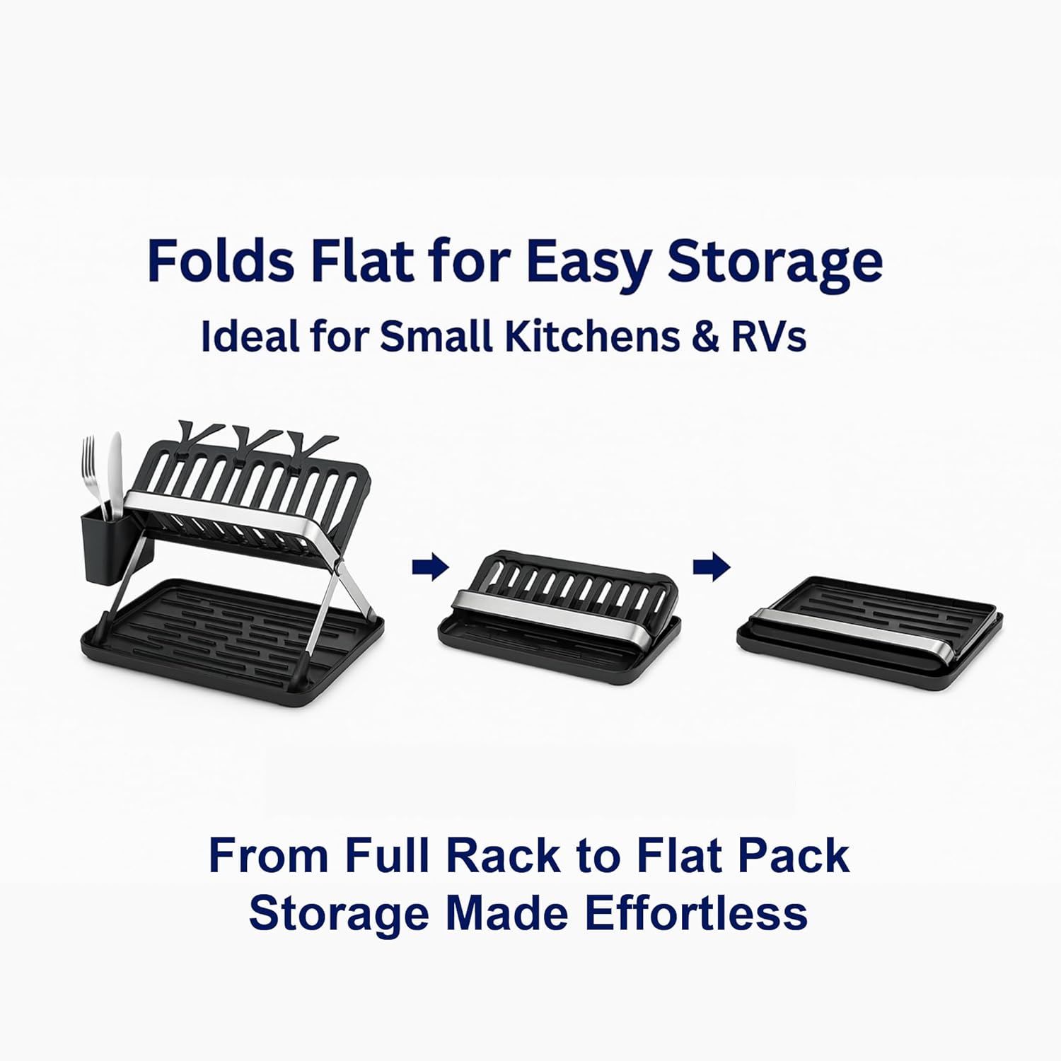 - ✅ Foldable & Space-Saving: Maximize your countertop space with a thoughtfully designed foldable dish rack that opens wide to accommodate full loads, then folds flat for easy storage when not in use. This dish rack for kitchen counter is perfect for apartments, small kitchens, RVs, or anyone who values clutter-free counters. The sleek foldable sink dish drainer system is ideal for minimalist homes without sacrificing drying capacity.