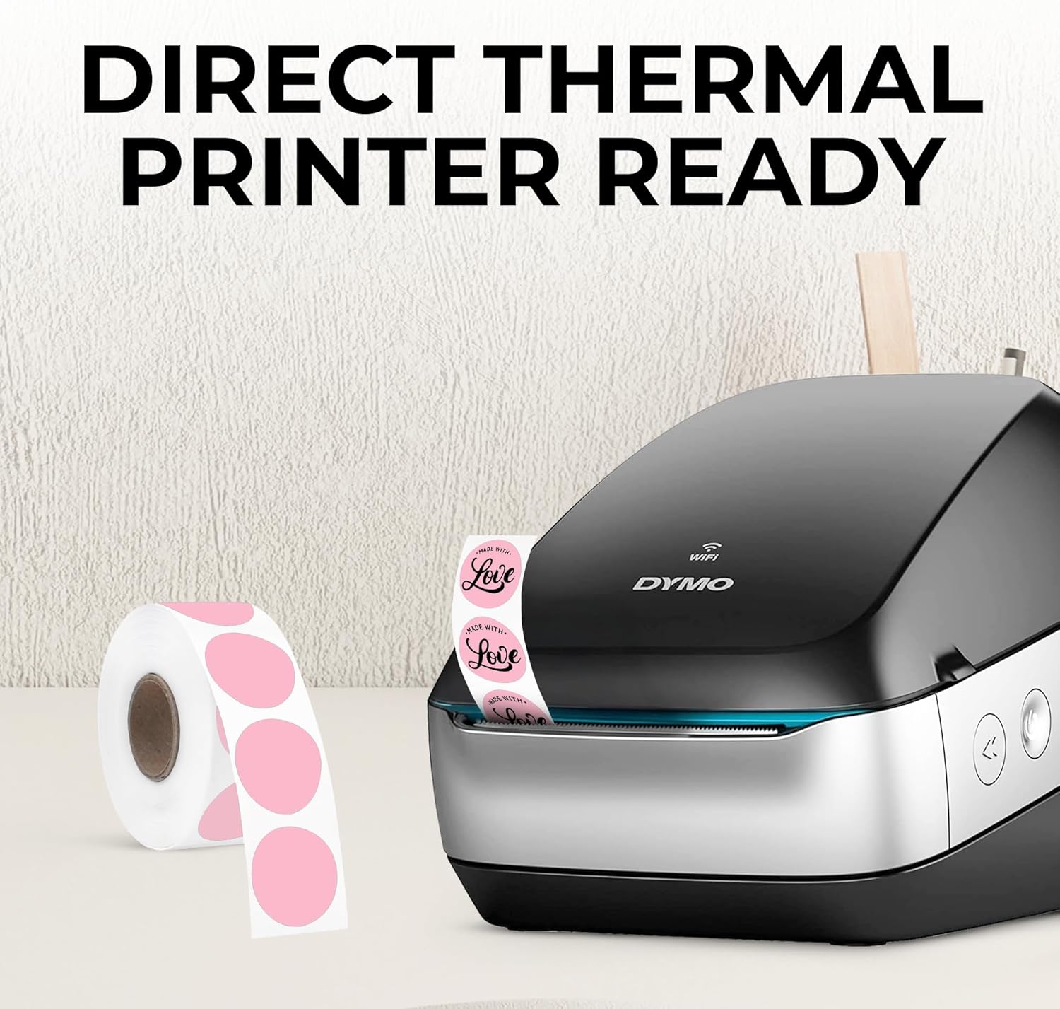 Perco Pink 1-Inch Perforated Circle Dot Thermal Sticker Labels — 735 Stickers/Roll, Direct Thermal Printer Compatible—with Permanent Adhesive for Color Coding, Garage Sales, Crafts—Made in USA