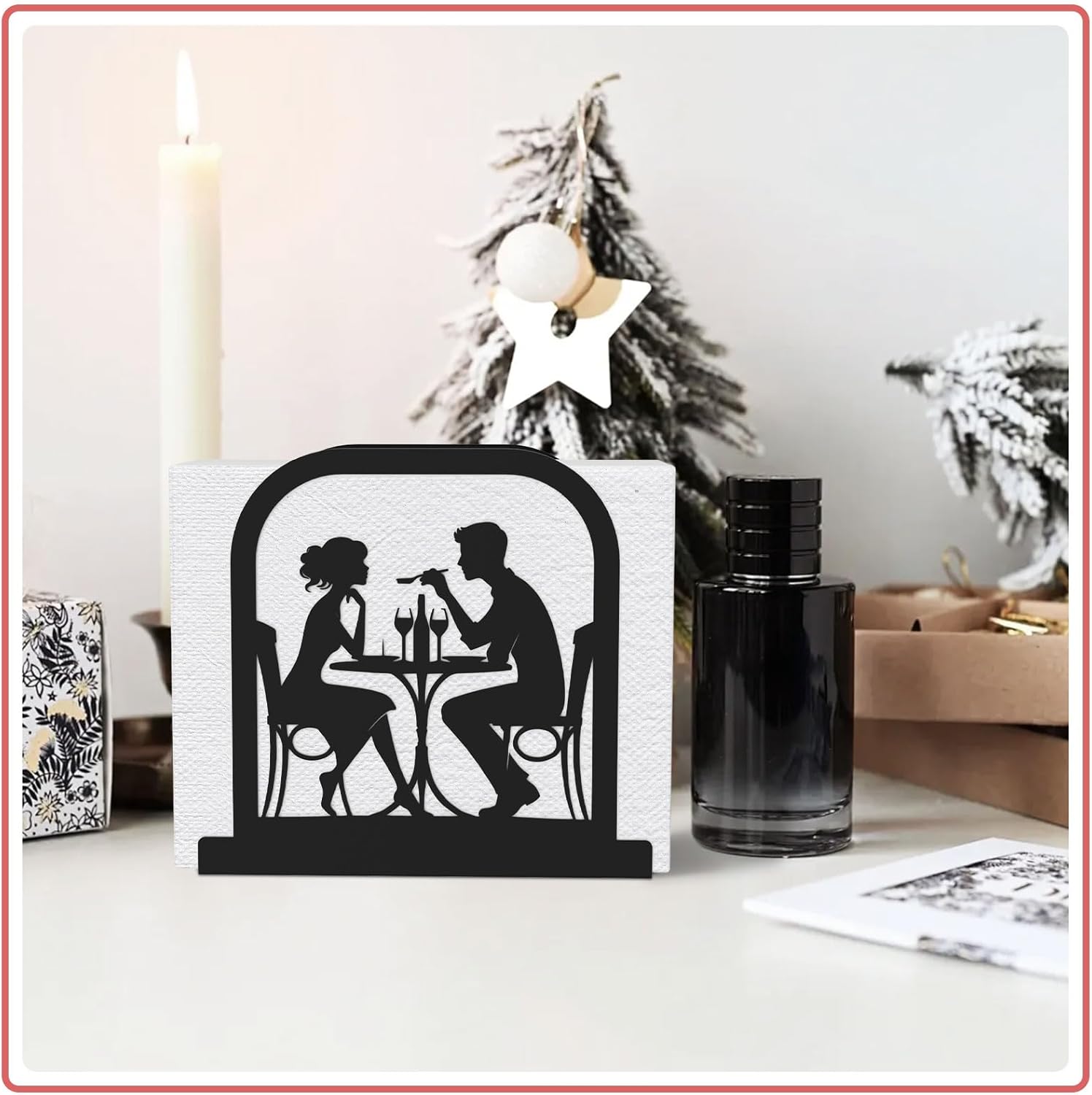 Modern Standing Napkin Holder for table, Black Metal Napkin Dispenser, Romantic Couple Meal Theme Style Napkin Holder, Suitable for Kitchen, Coffee Shop, Dining Room
