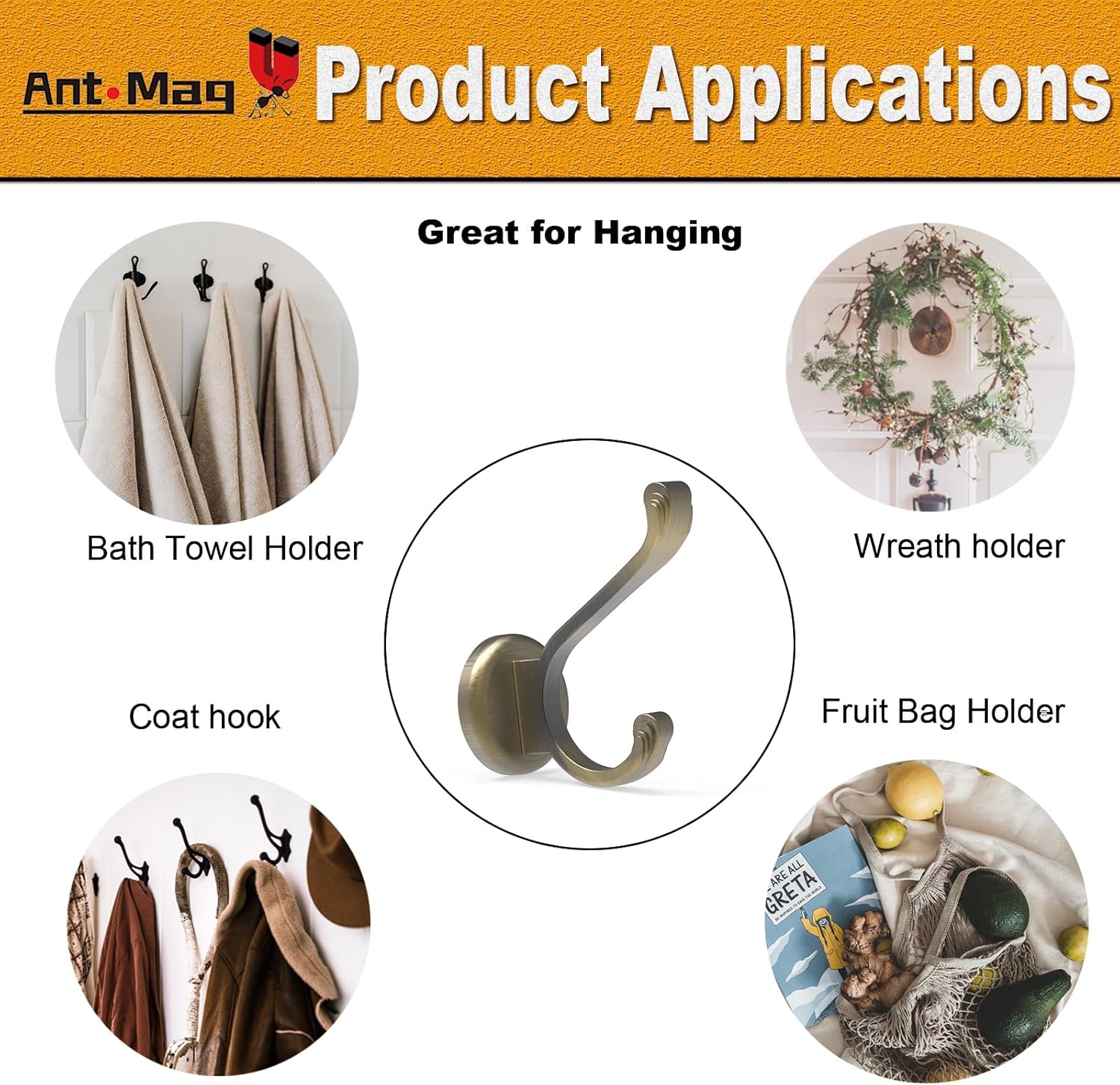 Ant Mag Magnetic Hooks Heavy Duty 141lbs Neodymium Magnet Metal Wall Hooks for Hanging Coats Robes Backpacks Bags Hats Keys Mugs Cups Towels Bronze