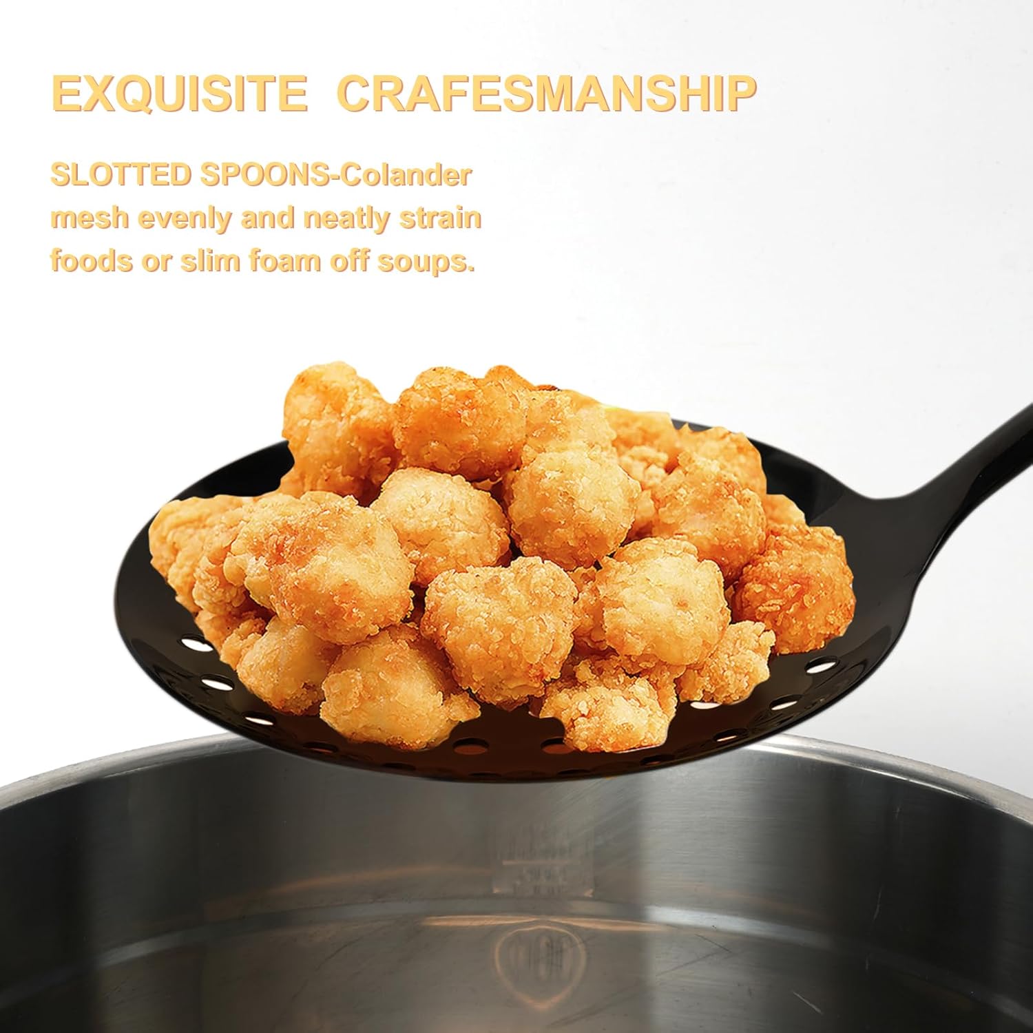 - Safety and Healthy: JXWING perfect slotted turner are design with stir-frying or grilling as the oil or butter easily drains through the slots, which means flushing out excess fats can lead to better dietary health control. The enough thickned slotted head does not bend at all when turning or lifting heavier foods.