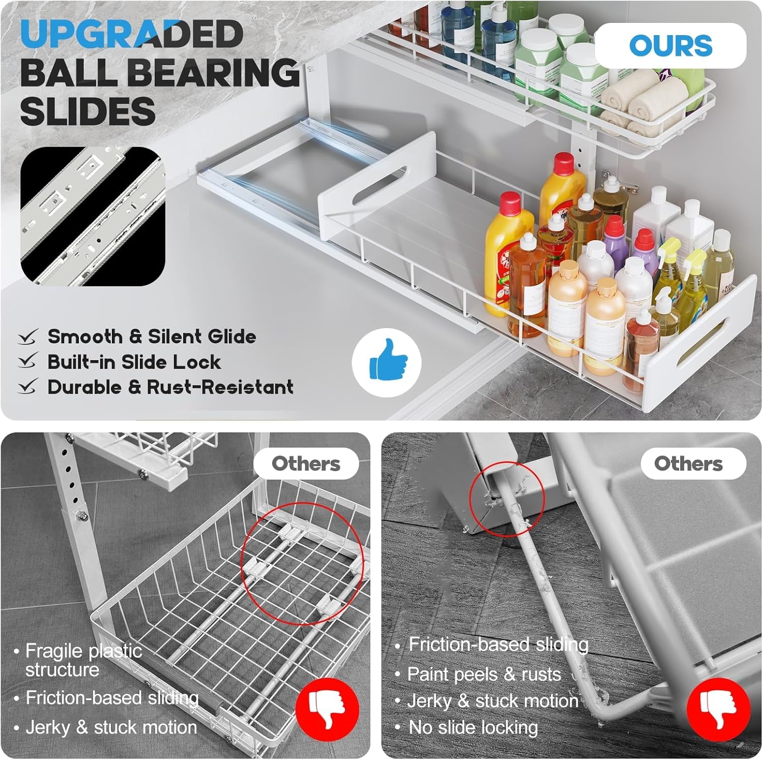 - 【Upgraded Professional Rails for Smooth Glide】Experience effortless sliding with our upgraded professional-grade rails. Both tiers feature dual pull-out drawers that glide smoothly, allowing easy access to all your essentials without hassle.
