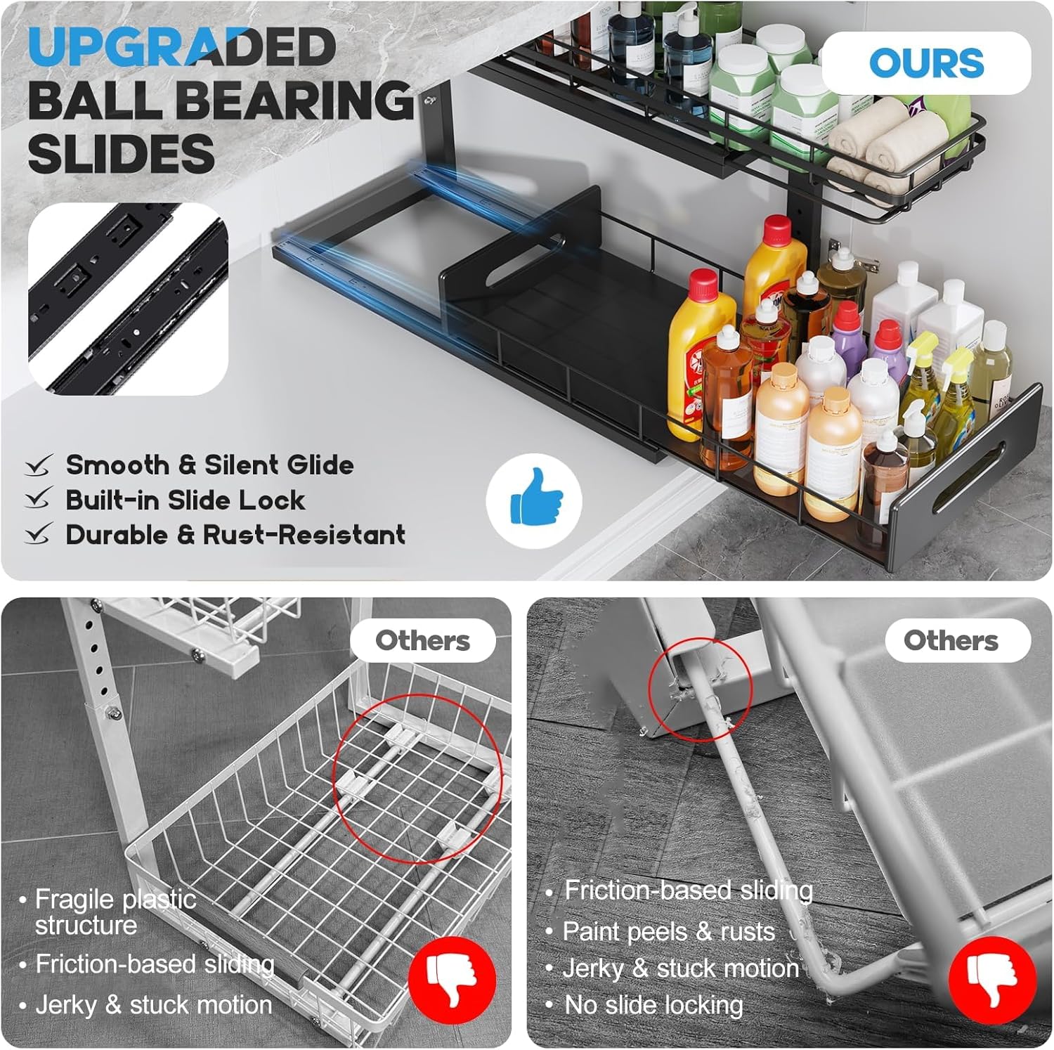 - 【Upgraded Professional Rails for Smooth Glide】Experience effortless sliding with our upgraded professional-grade rails. Both tiers feature dual pull-out drawers that glide smoothly, allowing easy access to all your essentials without hassle.