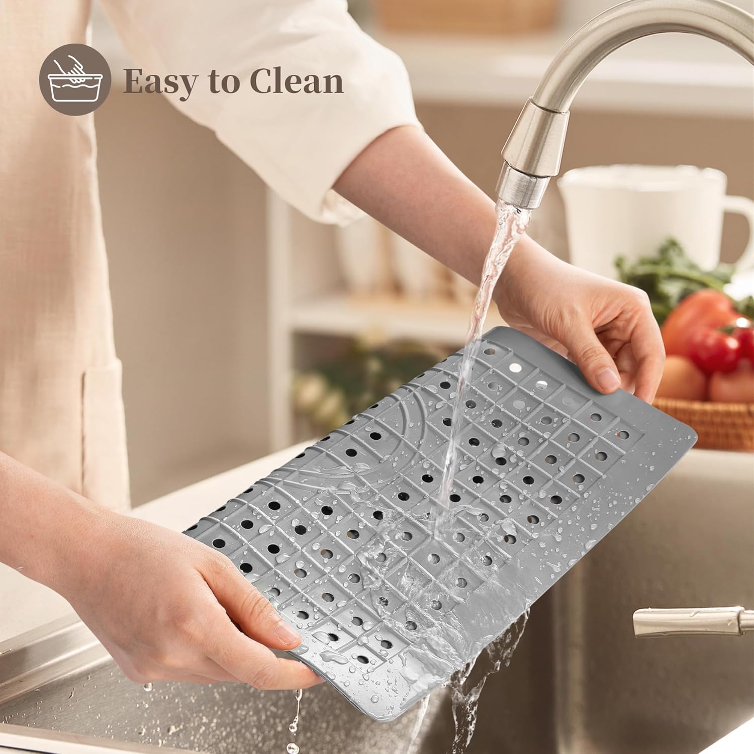 - 【Please Note】 This product is designed as a kitchen sink mat, please don't put high temperature cookware on the mat to avoid damage.Don't put it in dishwasher, Hand wash only, when cleaning, gently scrub with a brush or sponge, rinse thoroughly with clean water, and then air dry.