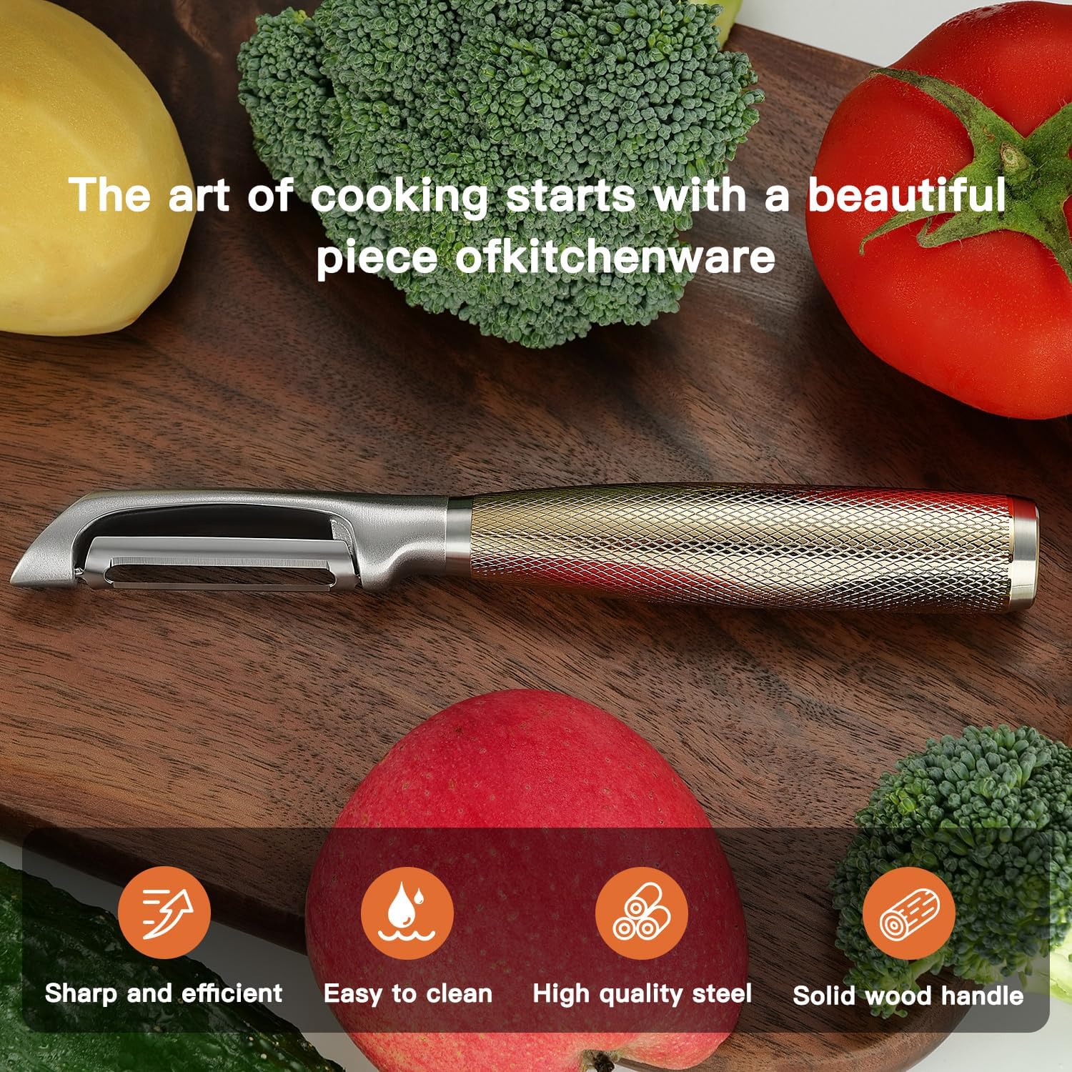 - Precision-Engineered Blade for Effortless Peeling: The blade is honed to a fine edge, allowing it to glide through tough skins and delicate produce with minimal pressure. This smooth action helps you prepare meals faster and with less food waste compared to standard peelers.