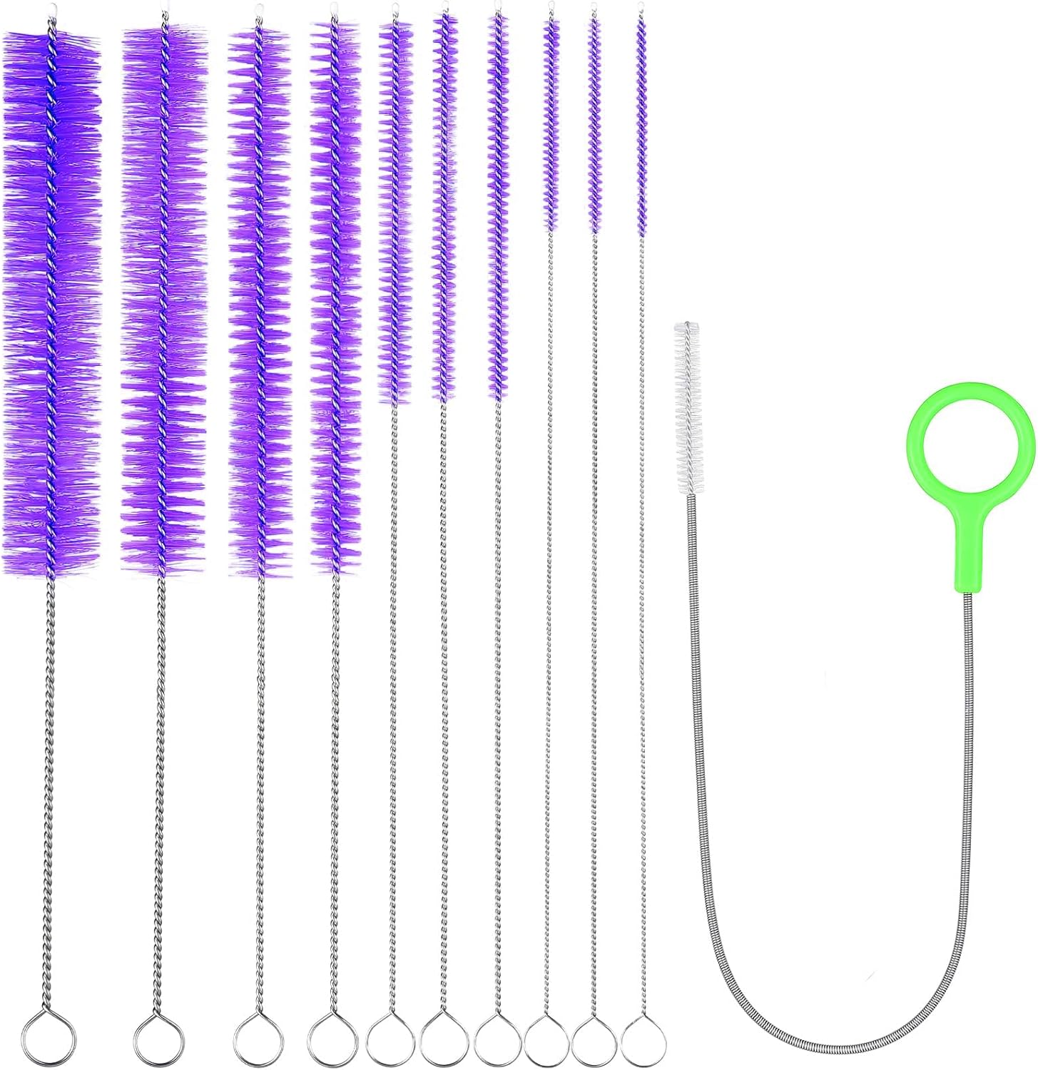 - ✅🫖2024 UPGRADE BOTTLE BRUSH: The straw cleaning brushes are 9.5 inches long, Bristle head diameter from 1/16 to 1 inch. The most important thing is that we give 1 extra stainless steel spring brush, which can be bent any 360 degrees to clean the pipe, fast rebound and not easy to deform. You will receive 11 pieces straw cleaning brush for silicone straws, glass straws, stainless steel straws,Baby Bottles. Water bottle brush kit is Ideal gifts for friends and family.