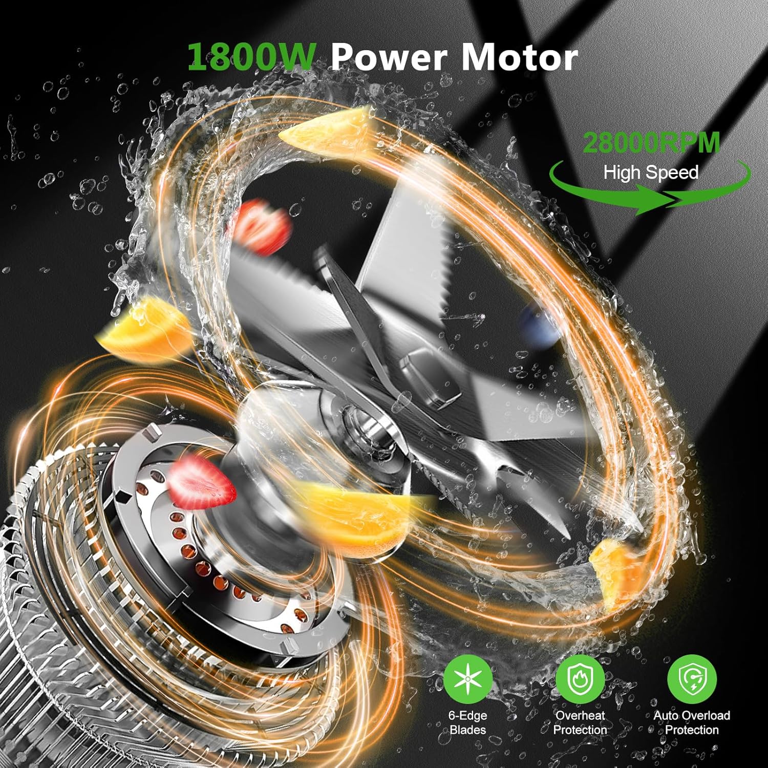 - Ultra-Powerful Performance: With a robust 1800W motor reaching speeds up to 28,000 RPM and 3D 6-leaf stainless steel blades, this high-performance kitchen blender for smoothies pulverize ice, frozen fruits, nuts, and tough ingredients effortlessly—delivering ultra-smooth textures for creamy smoothies, silky nut butters, and refreshing frozen drinks. The corrosion-resistant blades stay sharp for long-lasting durability