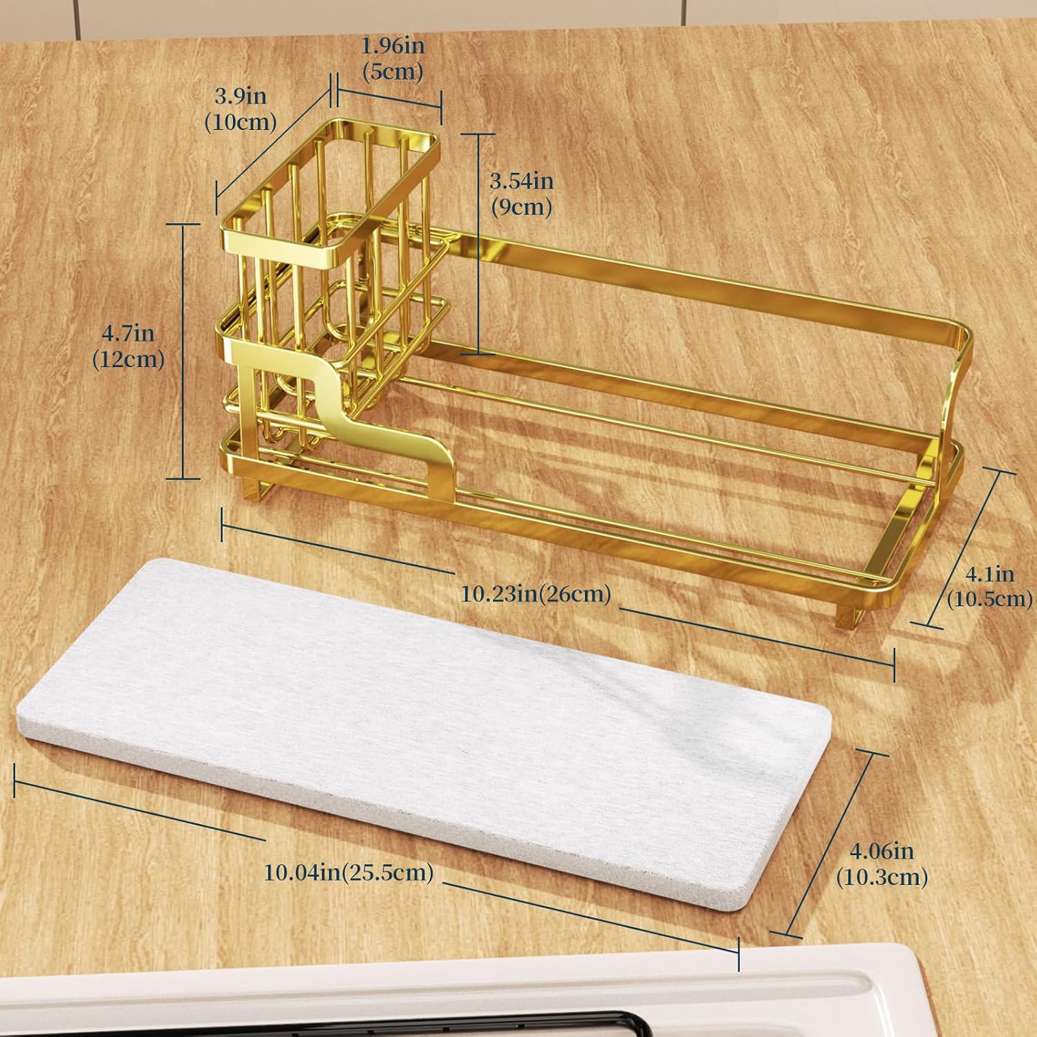 - [Fast Water Absorption and Drying]: Equipped with a sink caddy sponge holder featuring a diatomite base, it quickly absorbs water and dries fast, preventing water spots and odors, while keeping your items dry
