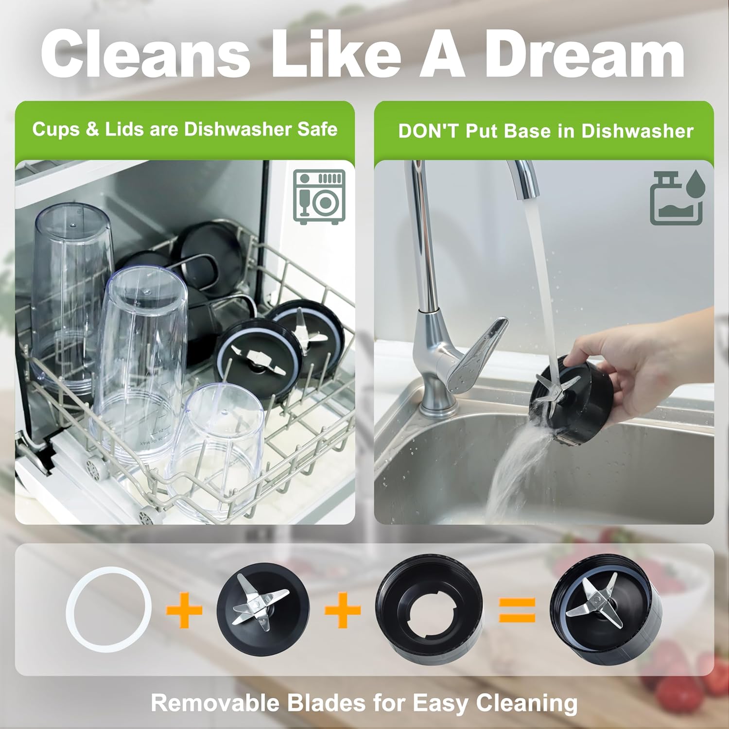- Easy Operation & Cleaning: Press to start, release to stop. Self-cleans in seconds with just soap and water. Detachable blades ensure thorough cleaning, while cups and lids are dishwasher-safe for added convenience.