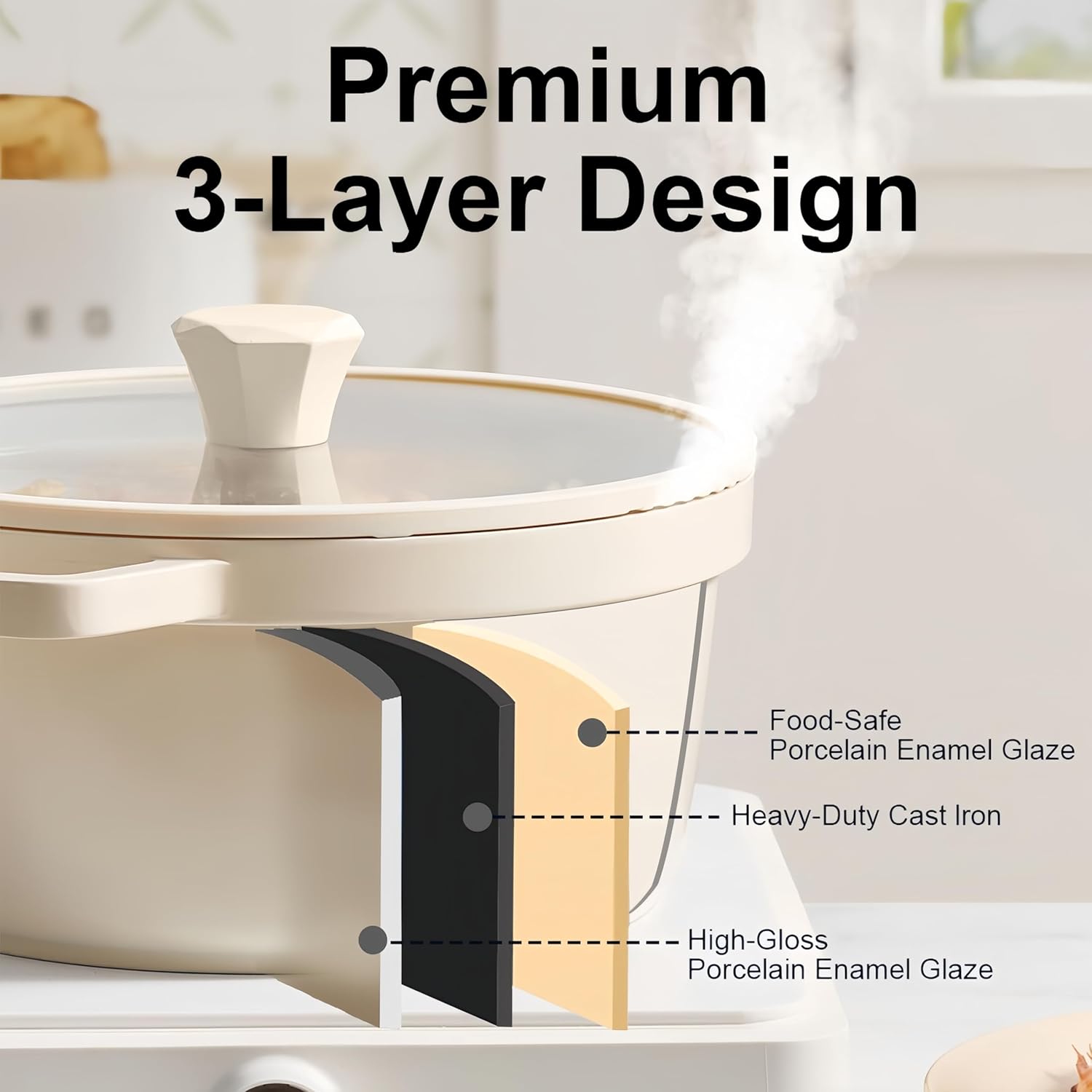 - SUPER NONSTICK - Iron Cast Nonstick Dutch Oven Pot with Glass LidThe surface is smooth and super nonstick, which makes cooking easier and the food much more flavorable with less oil INDUCTION COMPATIBLE - The nonstick dutch oven is constructed from cast aluminum with stainless steel base to prevent from warping, wobbling, or degrading over time, heats fast and evenly. Suitable for all stovetops, including Induction cooktop