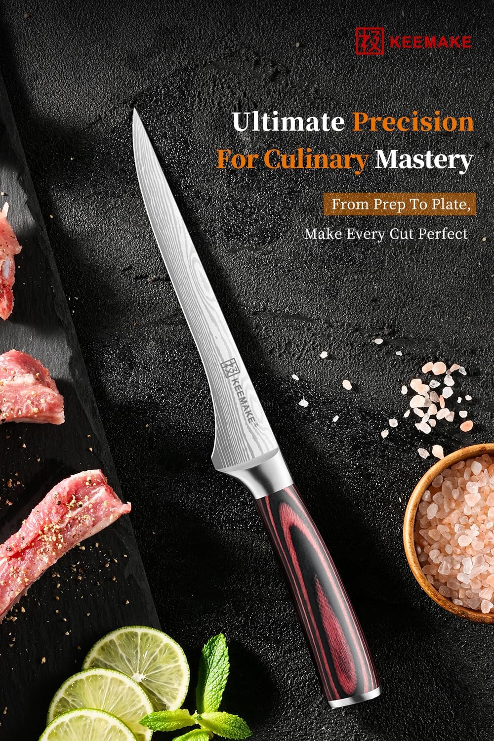 KEEMAKE Boning Knife 6 Inch - Super Sharp High Carbon Stainless Steel Fillet Knife for Meat, Fish & Poultry with Ergonomic Handle, w/Sheath - Ideal Gift for Chefs