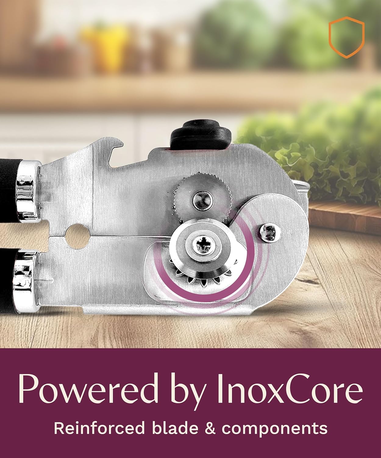 - 【INOXCORE Rust-Proof Stainless Steel Can Opener & Precision Gears with Ultra-Sharp Blade】 Constructed with reinforced INOXCORE stainless steel components, rust-proof finish, and precision-aligned gears, this premium kitchen tool houses a razor-sharp, high-carbon blade for clean, jag-free cuts every time. Its solid weight and brushed exterior delivers lasting sharpness and a premium feel.
